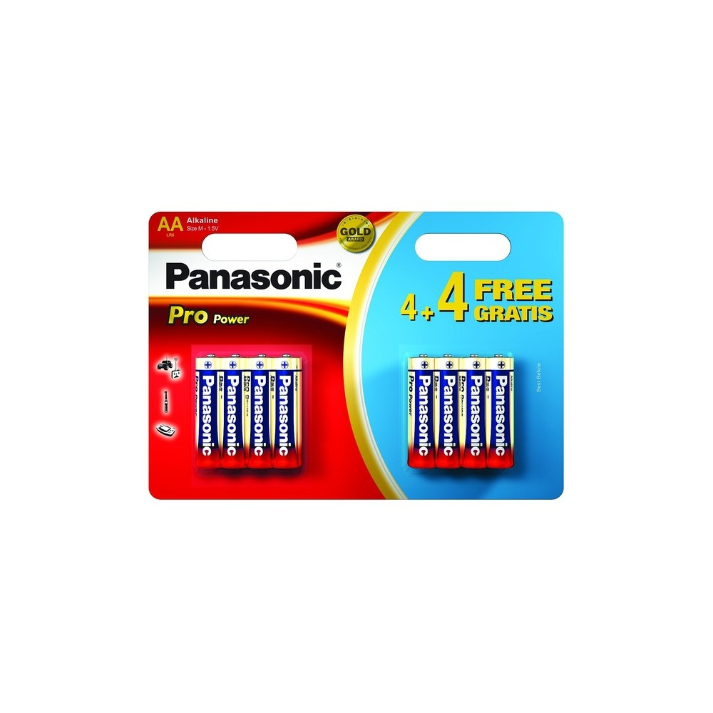 Baterie Panasonic z řady PRO POWER jsou vysoce výkonné alkalické baterie. Nabízíme Vám tyto baterie ve výhodném multipacku 4 + 4. Alkalické AA baterie jsou vhodné pro napájení fotoaparátů, bezdrátových zařízení, kapesních her, malých svítilen a dalších zařízení. Alkalické baterie Vám zajistí výrazně delší dobu provozu zařízení, než klasické uhlíko-zinkové AA baterie.