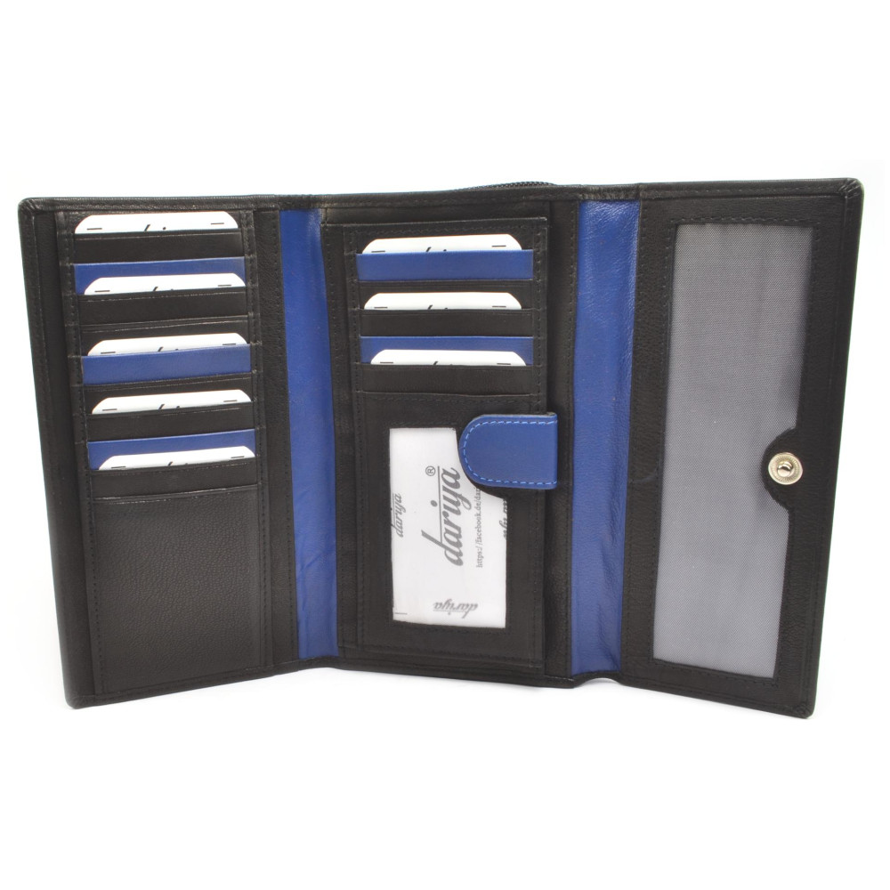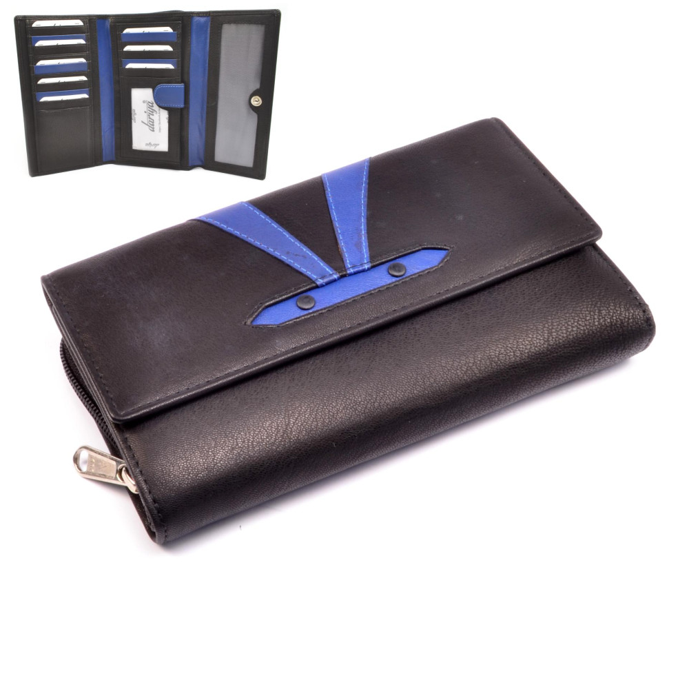 Nová a jedinečná barevná kožená peněženka dámská s uzavíráním velkou klopou a kapsou na zip na zadní straně peněženky. Peněženka se skládá ze dvou částí, jedna část se uzavírá velkou klopou s pevným drukem. Po otevření klopy kožené dámské peněženky jsou přístupné kapsy na karty a bankovky. V druhé části této peněženky, která se uzavírá masivním zipem, jsou dvě velké kapsy a mincovník s dalším zipem. Barevná kožená dámská peněženka je vyrobená z pravé, velmi jemné kůže a je značky Dariya bags.