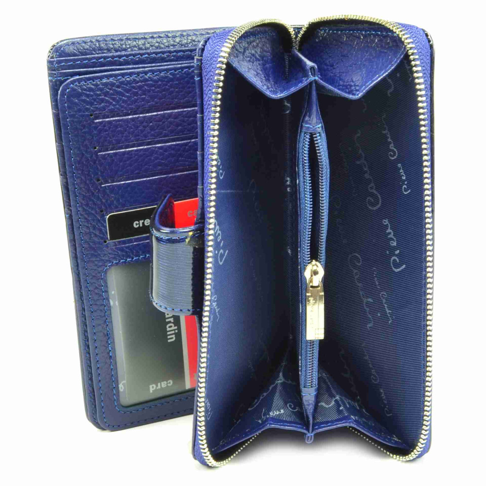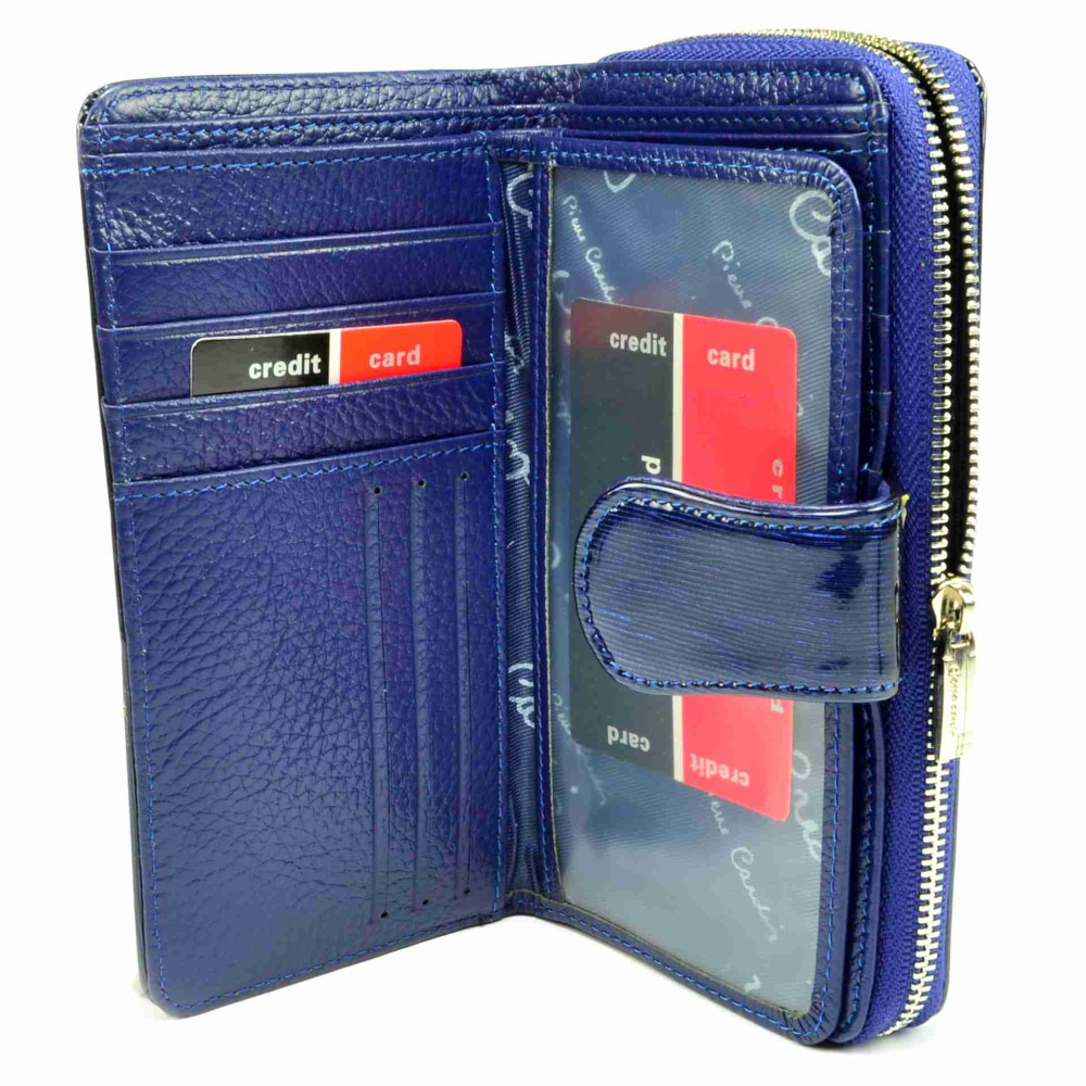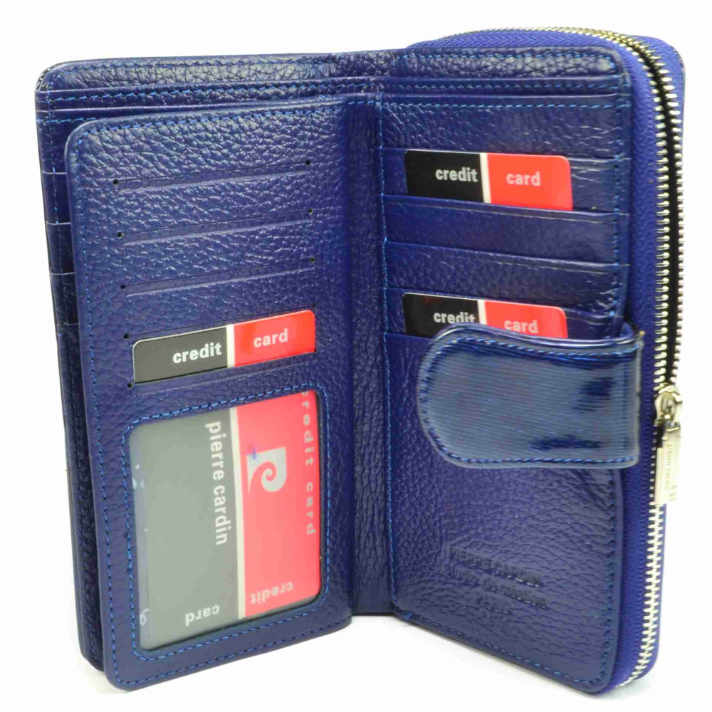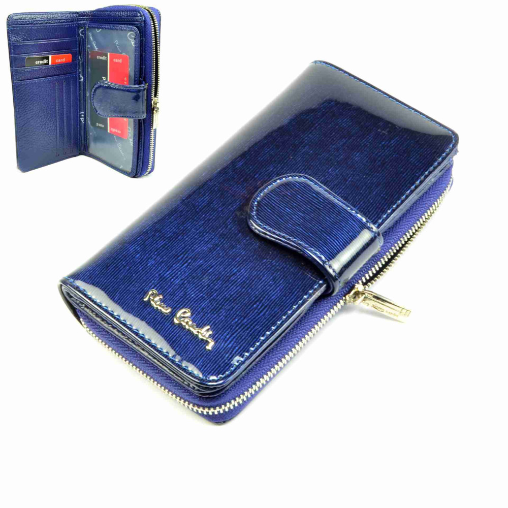 Barevná peněženka kožená dámská temně modré barvy fóliovaná z vnější strany. Pod klopou, kterou uzavírá přezka s dvěma pevnými druky, najdete klasické uspořádání. Uvnitř peněženky kožené dámské je dostatek kapes na karty, doklady, bankovky a jiné papírky. Velký mincovník je rozdělen na dvě kapsy a jednu se zavíráním na zip. Dlouhou životnost kožené dámské peněženky zajistí pravá kůže ze které je vyrobená. Z venku je peněženka foliovaná, pro stálost barev. Uvnitř peněženky je použitá pravá kůže. Barevná peněženka kožená dámská je značky Pierre Cardin.