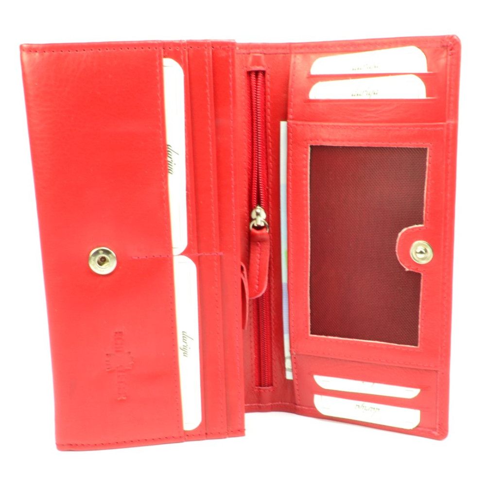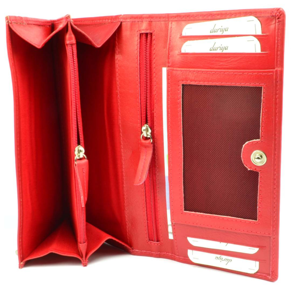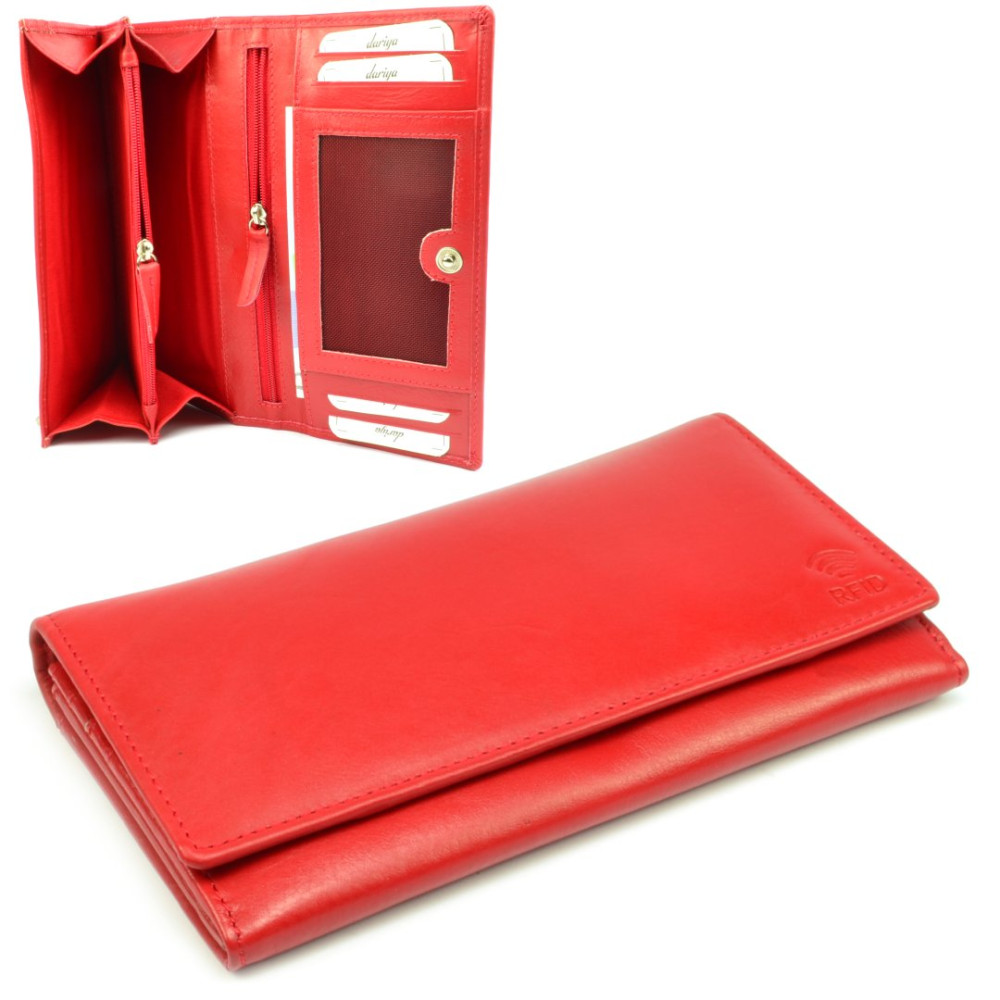 Z pravé kůže vyrobená červená dámská peněženka je ideální pro každodenní požití. Po otevření červené peněženky jsou přístupné všechny kapsy na karty, doklady a bankovky. Samozřejmostí je mincovník na zip. Na zadní straně peněženky je tenká kapsa přes celou její šíři. Červená dámská peněženka je vyrobena z pravé kůže a je značky Dariya Bags. Nezapomeňte, že dámské peněženky červené barvy jsou letos v kurzu. Vyberte si pro sebe tu pravou, červenou.