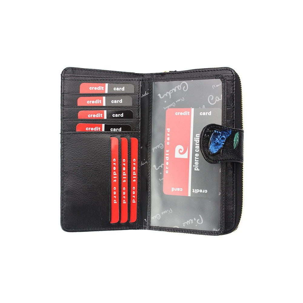 Obrázková peněženka kožená dámská červené barvy. Pod klopou, kterou uzavírá přezka s dvěma pevnými druky, najdete klasické uspořádání. Uvnitř peněženky kožené dámské je dostatek kapes na karty, doklady, bankovky a jiné papírky. Velký mincovník je rozdělen na dvě kapsy a jednu se zavíráním na zip. Dlouhou životnost kožené dámské peněženky zajistí pravá kůže ze které je vyrobená. Uvnitř peněženky je použitá pravá kůže. Obrázková peněženka kožená dámská je značky Pierre Cardin.