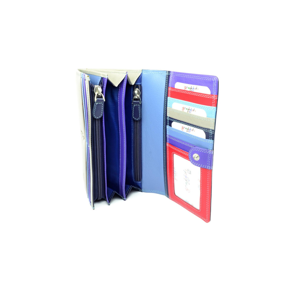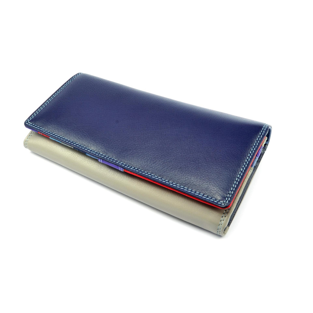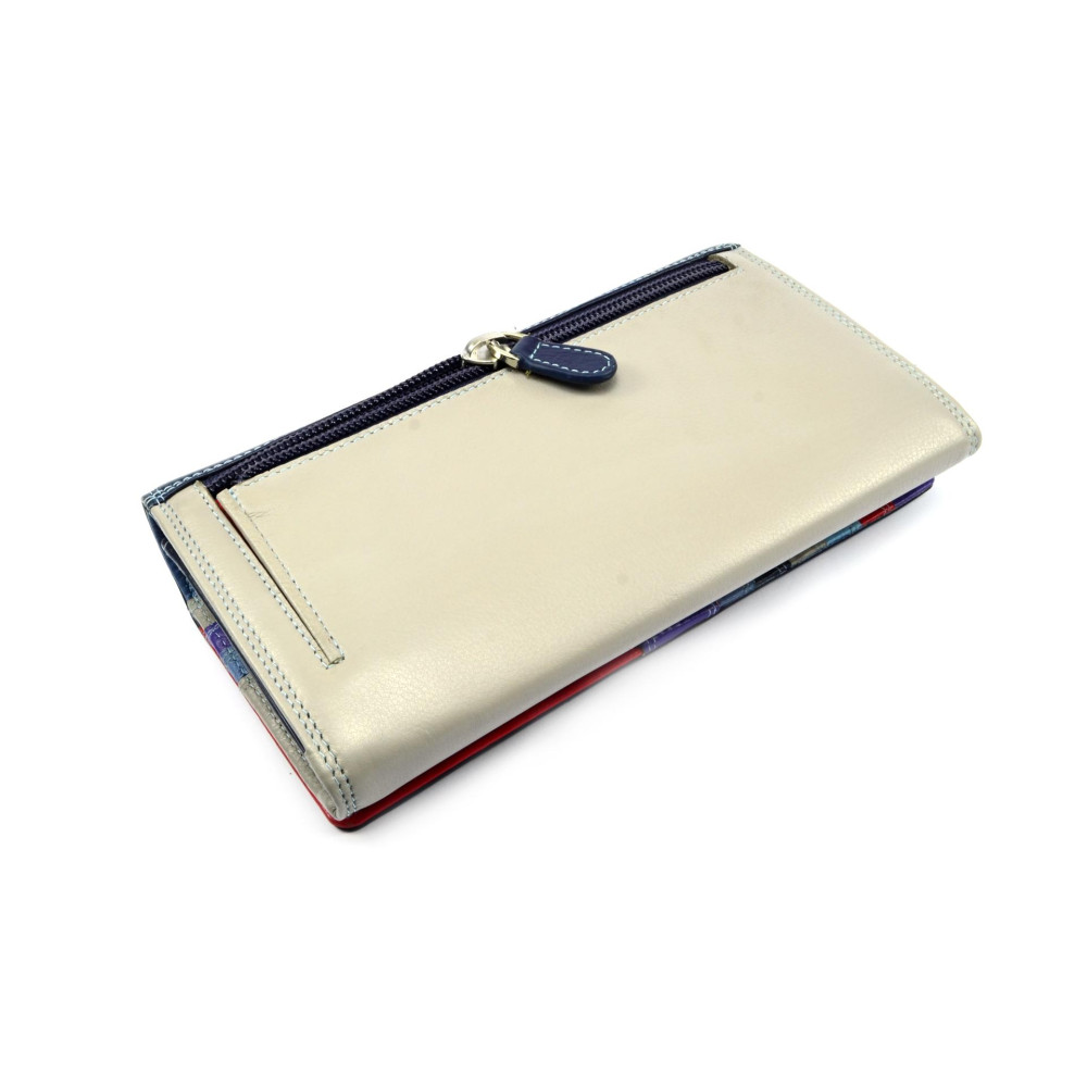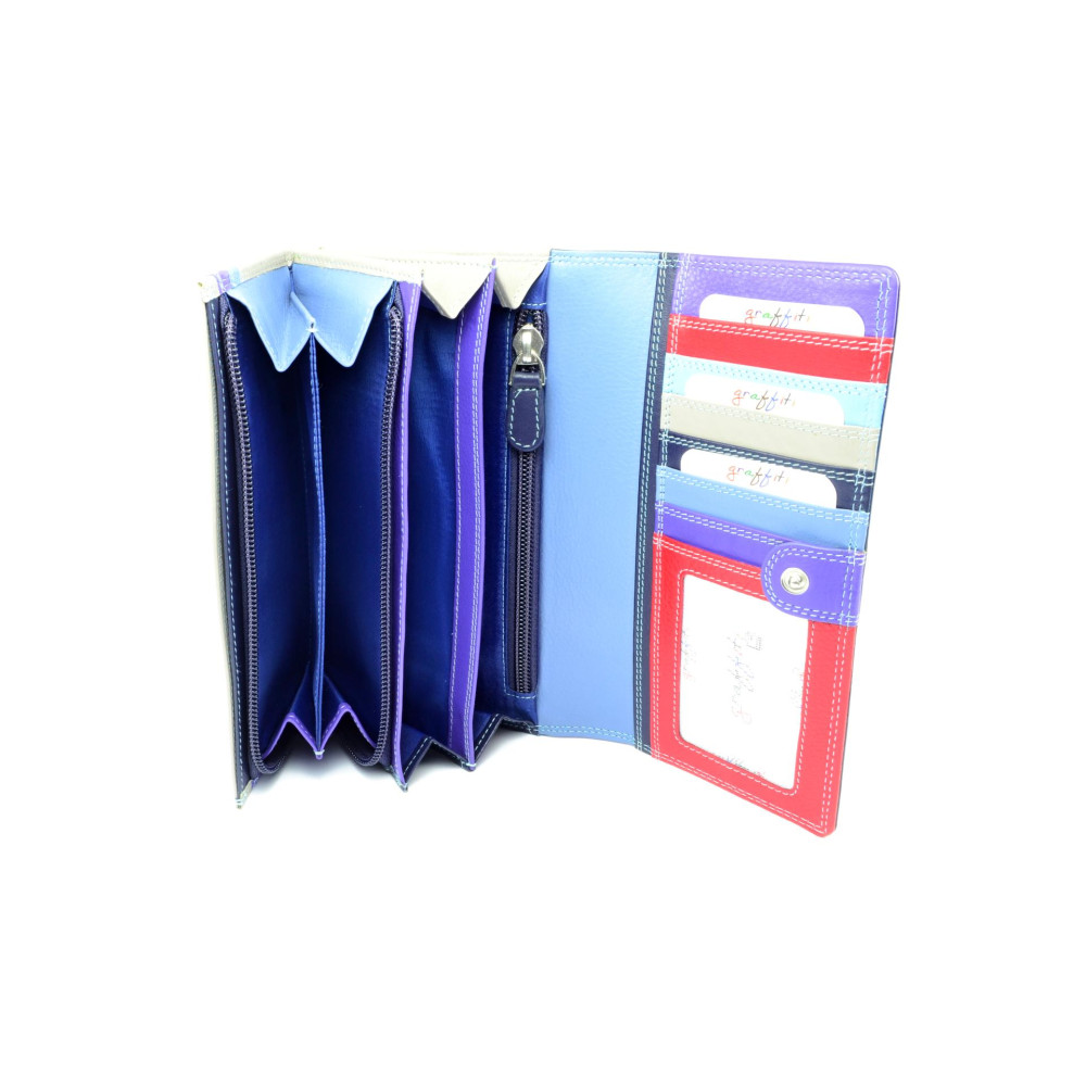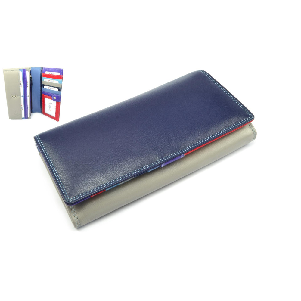 Dámská luxusní peněženka Golunski temně modré barvy na klopě s béžovou barvou na zadní straně vypadá opravdu parádně. Luxusní peněženka se uzavírá klopou s pevným drukem. Pod klopou jsou kapsy na karty a bankovky kterých je opravdu dostatek. Součástí dámské peněženky je samozřejmě mincovník uzavíratelný zipem. Mincovník je prošitý až na dno peněženky, takže už nebudete sbírat drobné všude až jej otevřete. Kožená dámská peněženka je vyrobena z pravé kůže a je značky Golunski.