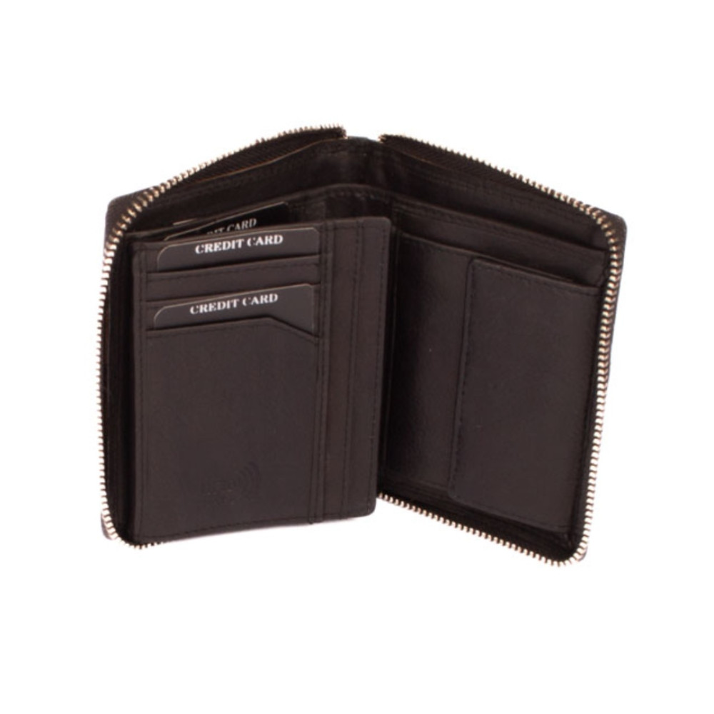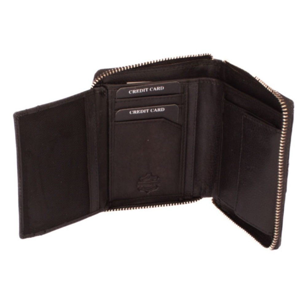Tato dámská peněženka černá na zip má masivní zip s velkým jezdcem a pořádným poutem pro pohodlné otevírání. Peněženka má uvnitř klasické uspořádání - najdete zde dostatek kapes na karty, velkou kapsu na bankovky a samozřejmě také mincovník s klopou a pevným drukem. V peněžence můžete také schovat nějaké tajnosti, k tomu jsou určené skryté kapsy. Peněženka je černé barvy, je značky Leonardo Verrrelli a je dodávána v dárkové krabičce. Dámská peněženka černá je také vybavena RFID ochranou proti nechtěnému čtení karet.