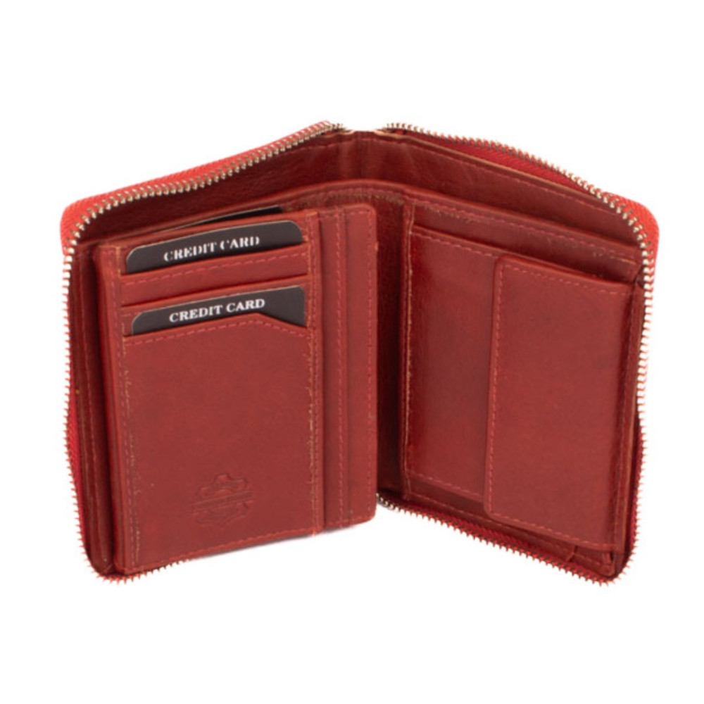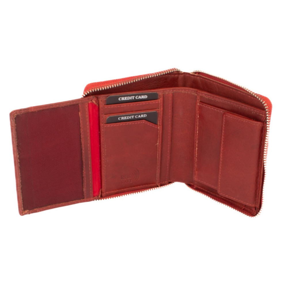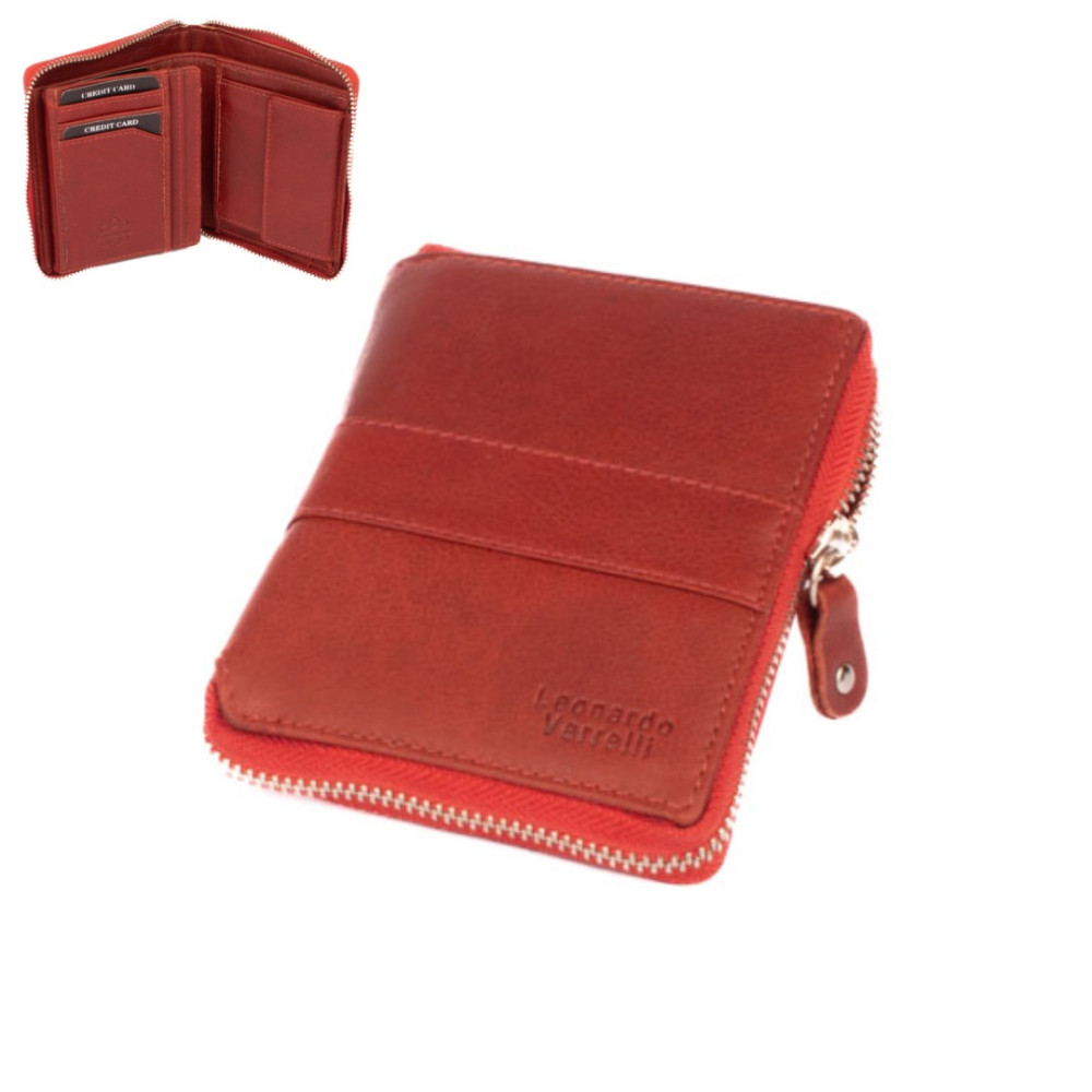 Dámská peněženka červená na zip má masivní zip s velkým jezdcem a pořádným poutem pro pohodlné otevírání. Peněženka má uvnitř klasické uspořádání - najdete zde dostatek kapes na karty, velkou kapsu na bankovky a samozřejmě také mincovník s klopou a pevným drukem. V peněžence můžete také schovat nějaké tajnosti, k tomu jsou určené skryté kapsy. Peněženka je červené barvy, je značky Leonardo Verrrelli a je dodávána v dárkové krabičce. Dámská peněženka červená je také vybavena RFID ochranou proti nechtěnému čtení karet.