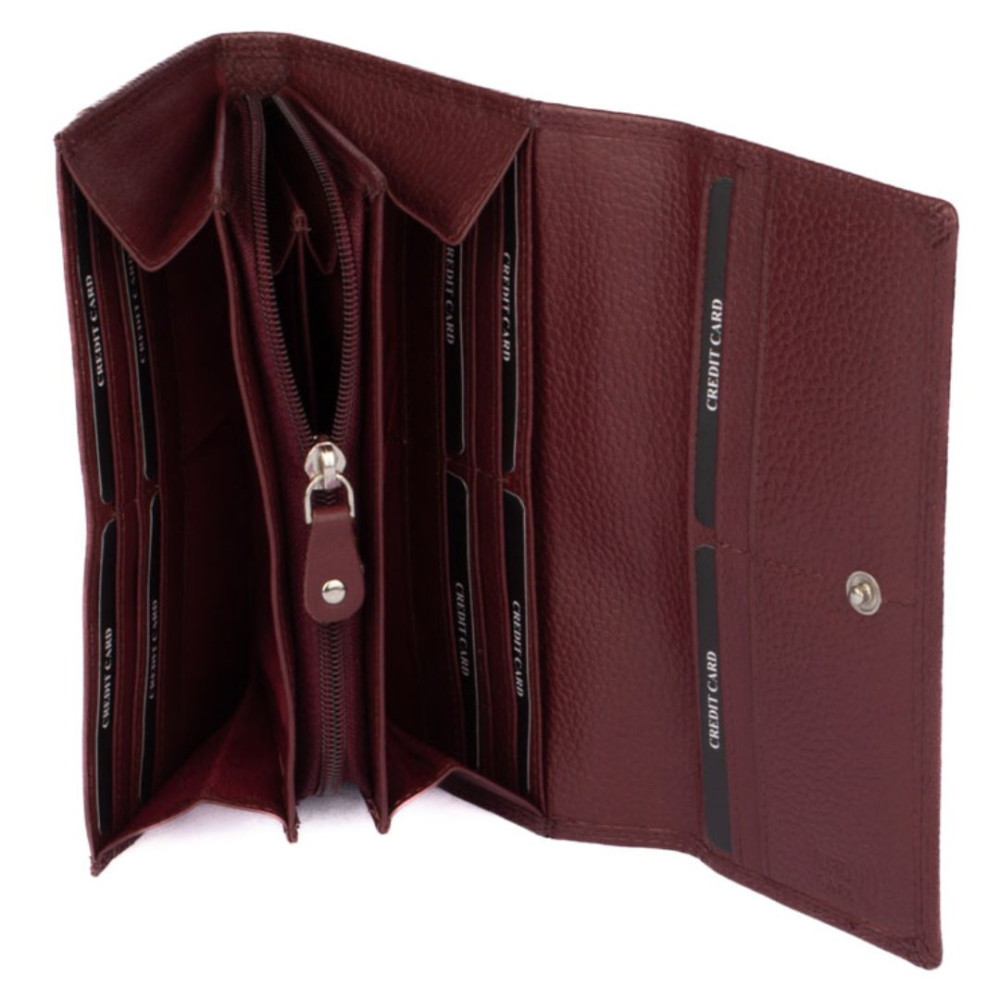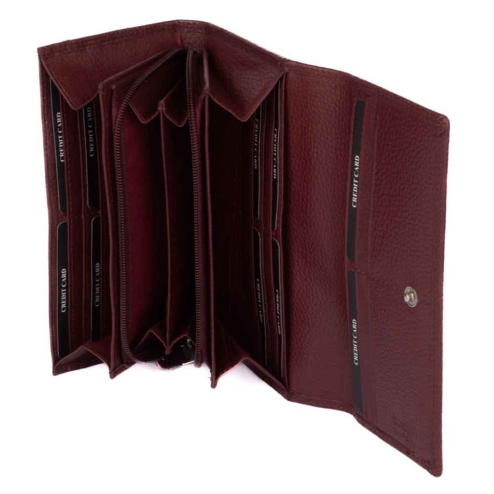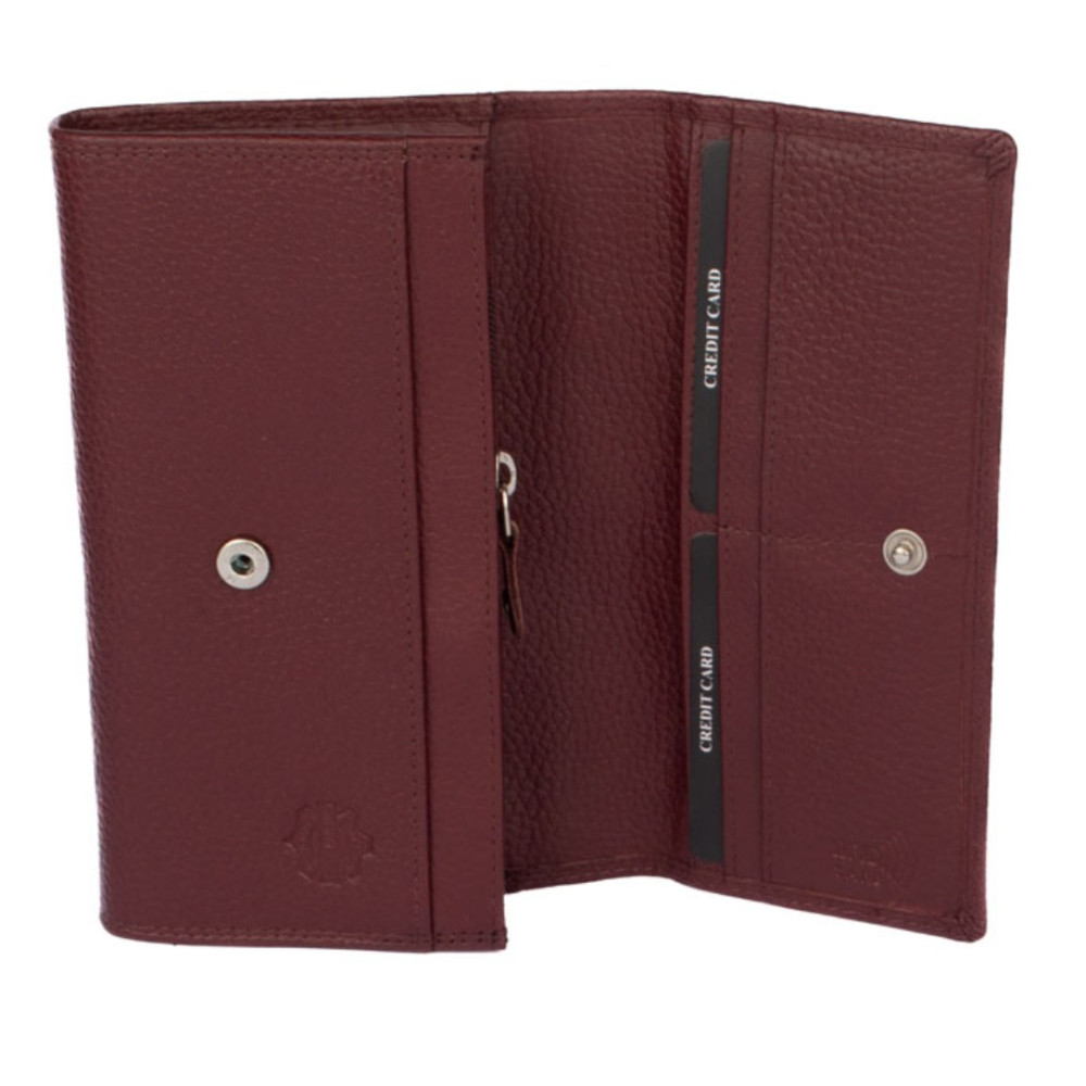 Dámská peněženka fialová z pravé kůže na povrchu pórovité se stane vaším oblíbeným doplňkem. Peněženka se uzavírá velkou klopou přes celou peněženkou s pevným drukem. Po otevření klopy jsou na její vnitřní straně kapsy na karty a tenká kapsa. Další, tentokrát velké kapsy, jsou v druhé části peněženky, ty můžete využít například na bankovky. Po bokách mají kapsy další kapsy na karty. V každé části je jedna tenká kapsa. Dámská peněženka fialová má přesně uprostřed velký mincovník přes celou peněženku uzavřený pořádným zipem s velkým jezdcem. Ten zajistí pohodlné otvírání. Uvnitř je tenká kapsa a dvě větší kapsy, například na mince. Kapsy jsou prošité až na dno, takže už nebudete trousit žádné mince. Na zadní straně peněženky je jedna tenká kapsa přístupná bez nutnosti otevřít peněženku. Tato dámská peněženka fialová je vyrobená z pravé kůže fialové barvy a je značky Leonardo Verrelli. Peněženka je dodávána bez dárkové krabičky.