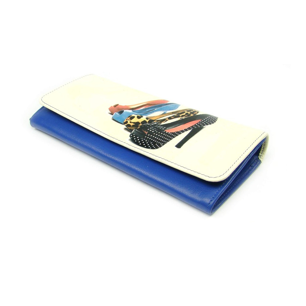 Luxusní dámská peněženka s potiskem módní obuvi. Opravdu velká peněženka je uvnitř sice jednoduchá, ale naprosto geniálně řešená. Vše potřebné pojmou opravdu velké kapsy mezi kterými je mincovník přes celou peněženku. Dámská peněženka s potiskem je vyrobena z pravé velmi jemné kůže a je značky Golunski.