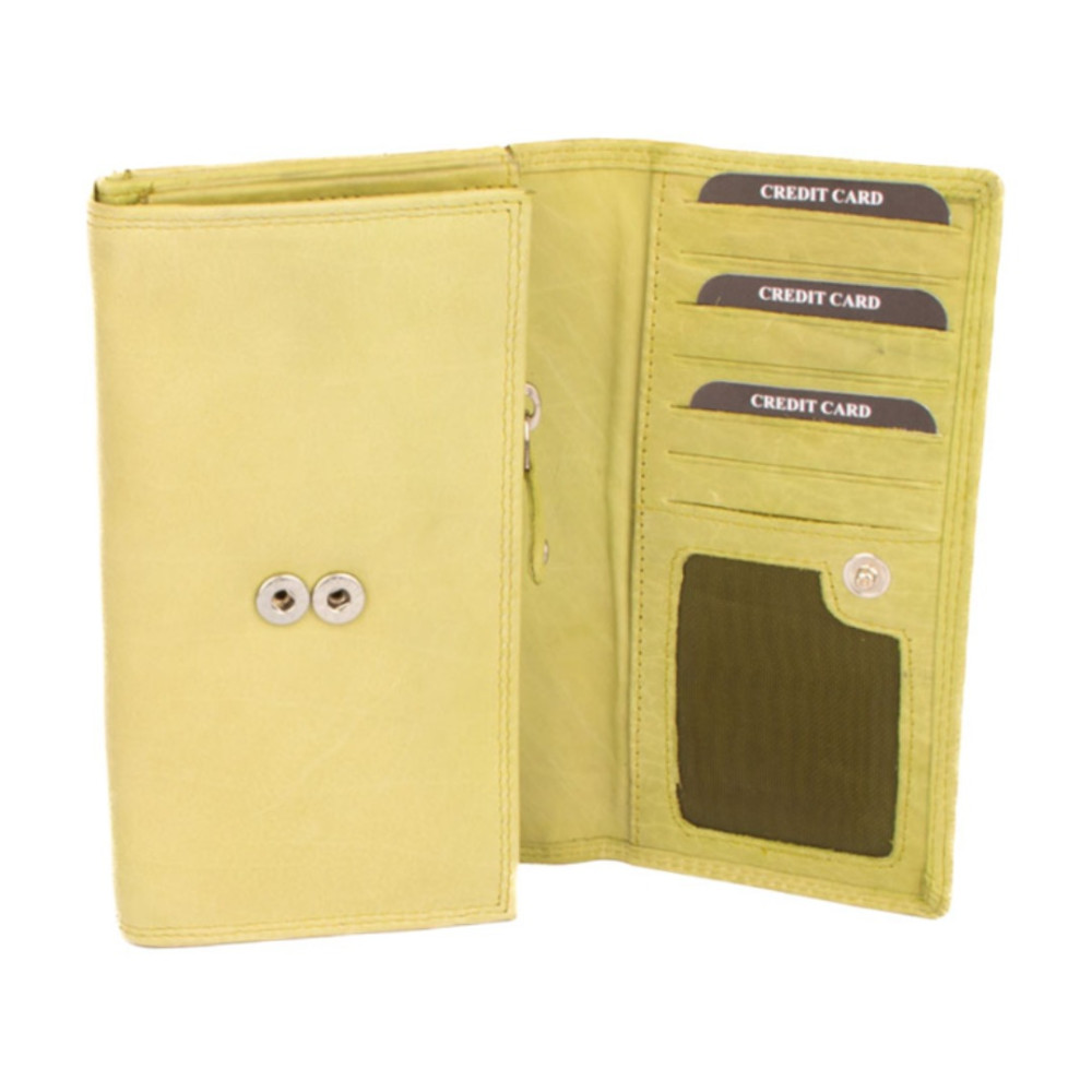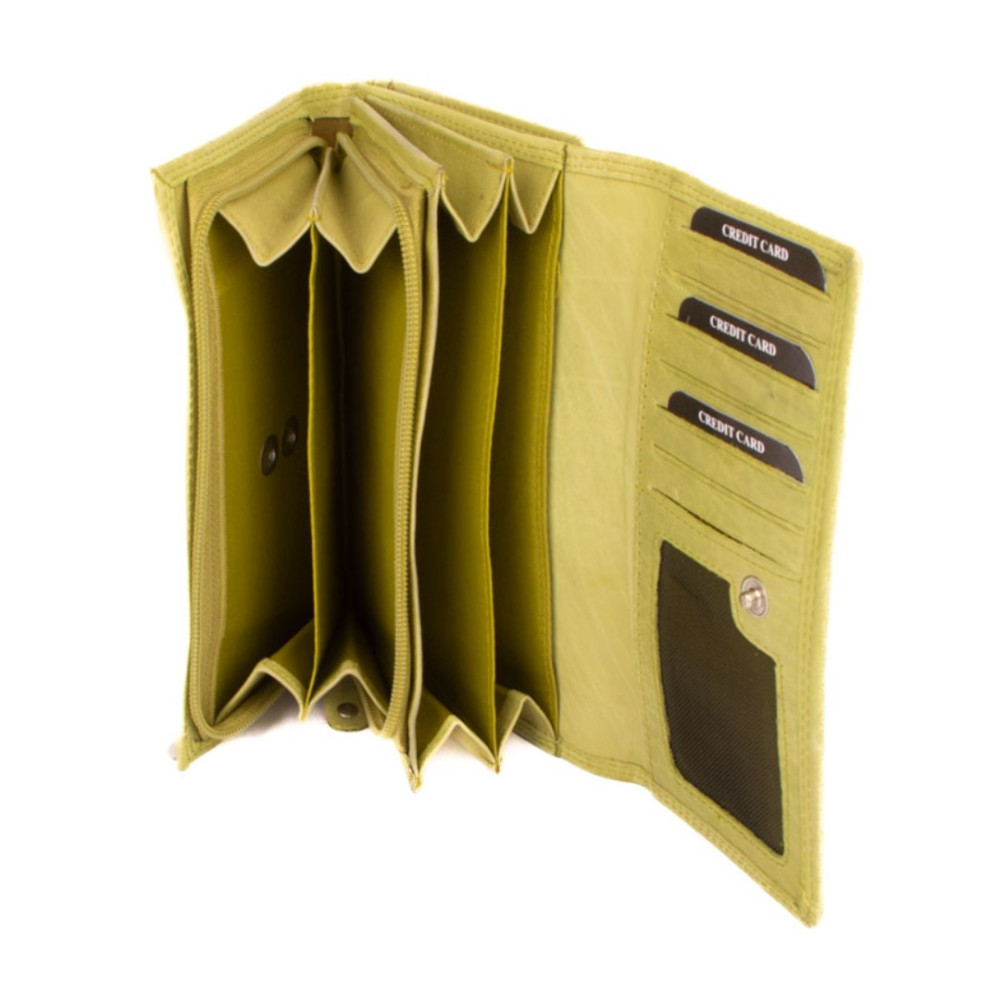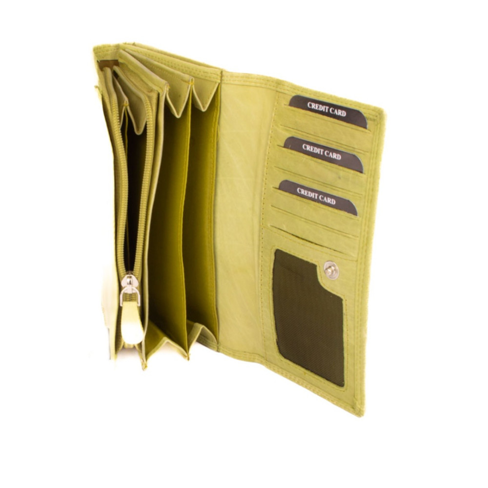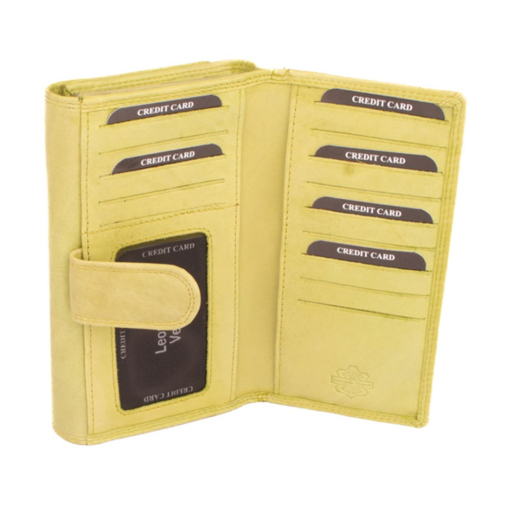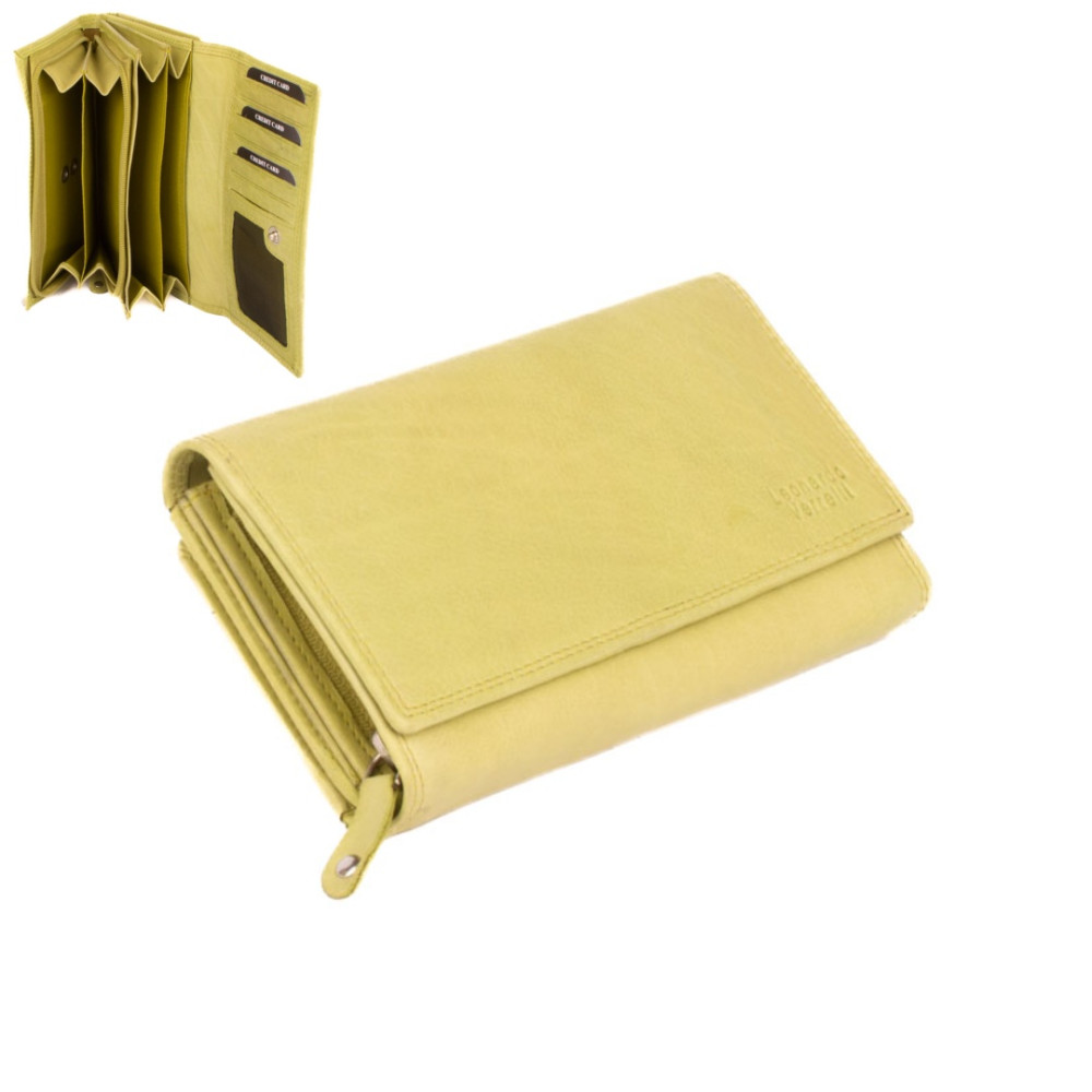 Dámská peněženka světlá je rozdělená na dvě poloviny. Jedna polovina se uzavírá klopou s pevným drukem. Po jejím otevření je přístupných několik kapes na platební a jiné karty, jedna z nich je průhledná. Vedle jsou dvě kapsy na bankovky. Všechny české bankovky je nutné přeložit před vložením. Vedle je kapsa na zip přes celou peněženku s velkým jezdcem pro pohodlné otevírání. Uvnitř jsou dvě velké kapsy na mince. Uplatnění najdete určitě i pro pár tenkých kapes, třeba na nějaké tajné papírky. Druhá polovina peněženky se uzavírá přezkou s pevným drukem. Po jejím otevření se přístupné další kapsy na karty, jedna je průhledná. Peněženka je vyrobená z pravé kůže s ornamenty jemných zrn, má světle zelenou barvu a je dodávána bez dárkové krabičky. Dámská peněženka světlá je také vybavena RFID ochranou proti nechtěnému čtení karet.