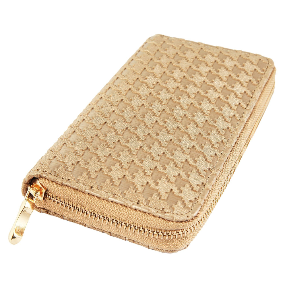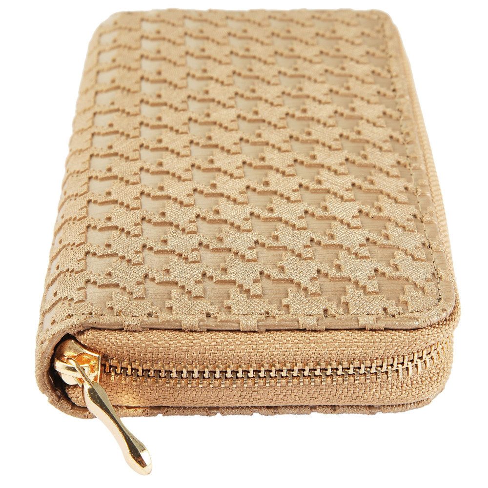 Dámská peněženka se uzavírá pomocí zipu, který je umístěný po obvodu jedné delší a dvou kratších stran peněženky. Velký jezdec, kterým je zip opatřený, umožňuje snadné rozepínání i zapínání.