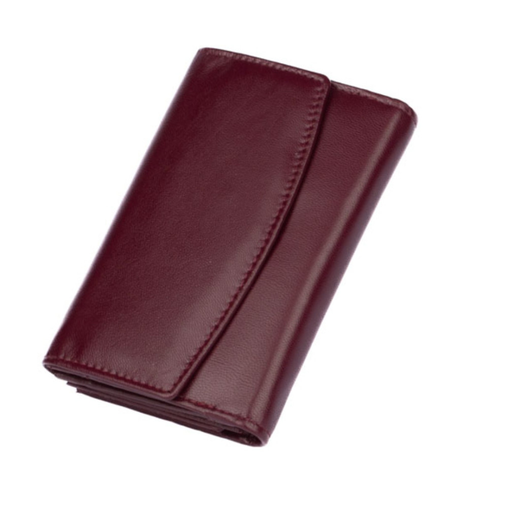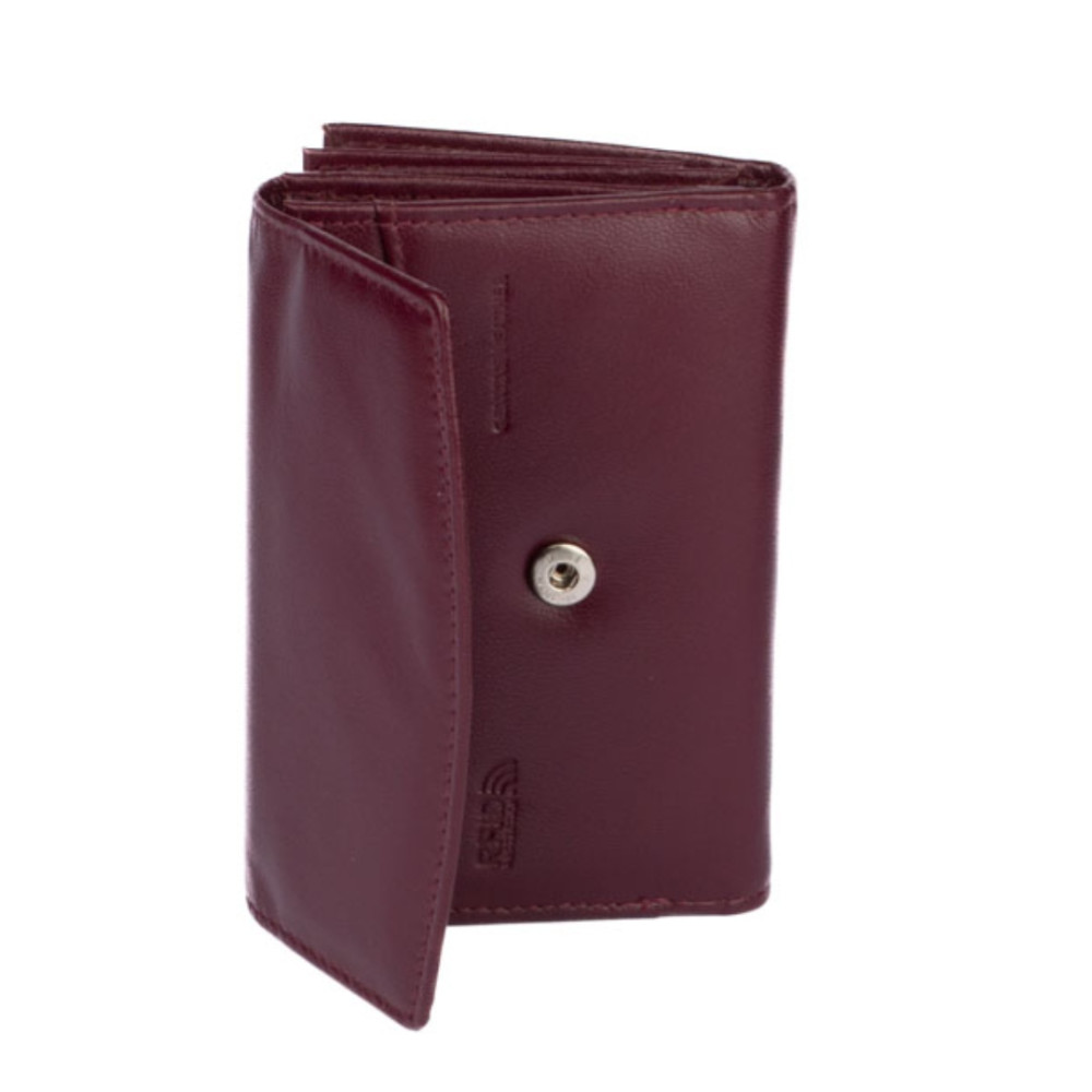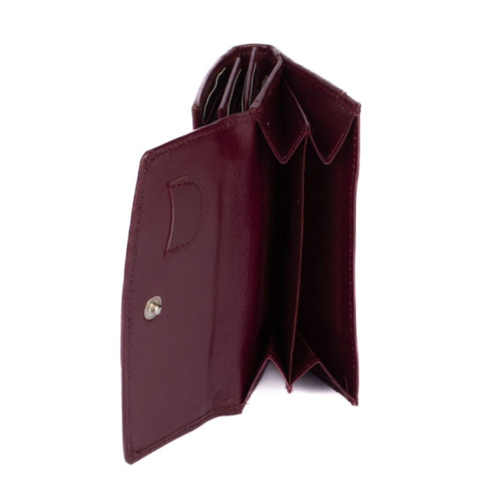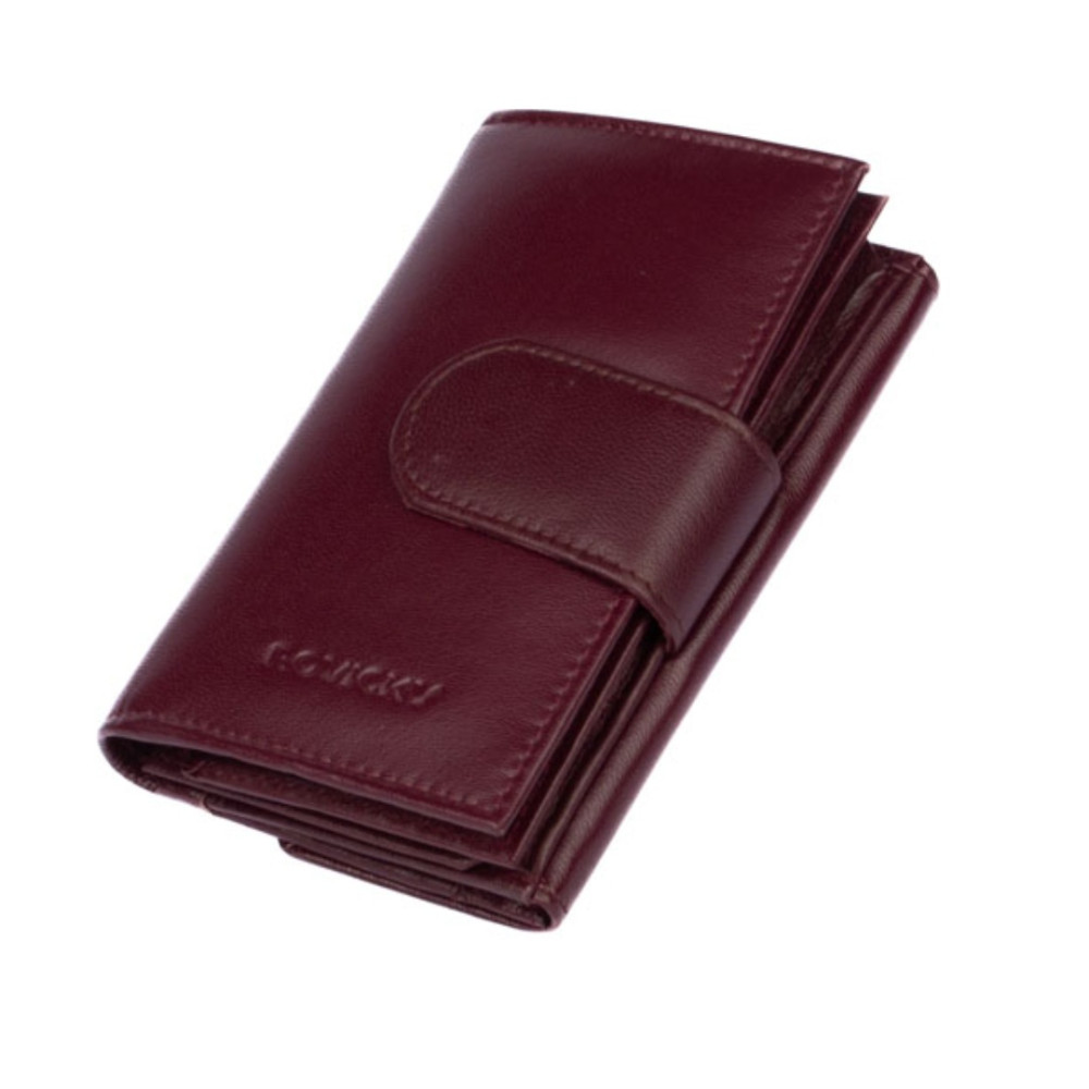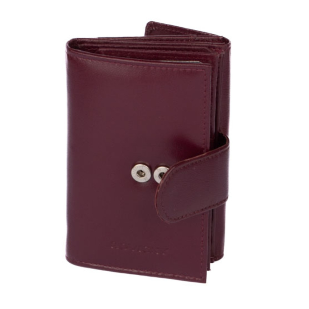 Fialová kožená dámská peněženka s přezkou z pravé kůže je rozdělena na dvě poloviny. První polovina dámské peněženky se uzavírá přezkou s pevným drukem. Druk lze zapnout do dvou poloh, podle zaplnění peněženky. Po otevření této části jsou přístupné všechny kapsy na karty a doklady v několika dalších klopách. Několik kapes na karty je průhledných. V klopách za kapsami jsou další tenké kapsy. Fialová kožená dámská peněženka s přezkou má v druhé polovině peněženky jednu velkou kapsu rozdělenou na několik menších. Tato část peněženky se uzavírá klopou s pevným drukem. Netradičně je v klopě umístěn držák na žeton do košíku. V peněžence nejsou klasické velké kapsy na bankovky, ale pár bankovek pohodlně uložíte do tenkých kapes v peněžence nebo do kapes pod klopou. Tato Fialová kožená dámská peněženka s přezkou je vyrobena z pravé kůže tmavě fialové barvy a je značky Rovicky. Peněženka je dodávána v dárkové krabičce s logem výrobce.