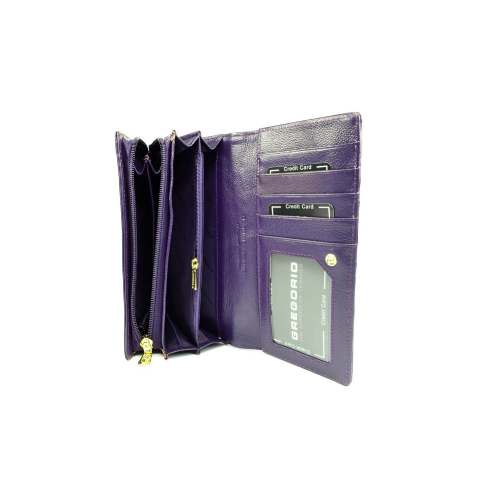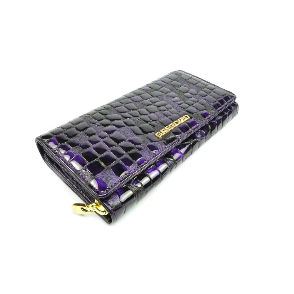 Neobvyklý vzhled z venku ale klasické uspořádání zevnitř nabízí tato malá dámská peněženka. Peněženka se uzavírá velkou klopou s pevným drukem. Po otevření klopy jsou ihned přístupné kapsy na karty. Po otevření malé dámské peněženky můžete dávat věci do dvou velkých kapes anebo do jedné úzké, se zipem. Mincovník peněženky je opravdu velký, uzavírá se masivním zipem s velkým jezdcem. Malá dámská peněženka je vyrobená z pravé kůže, na vnější straně foliovaná.