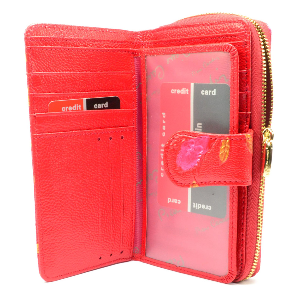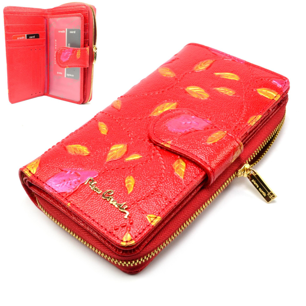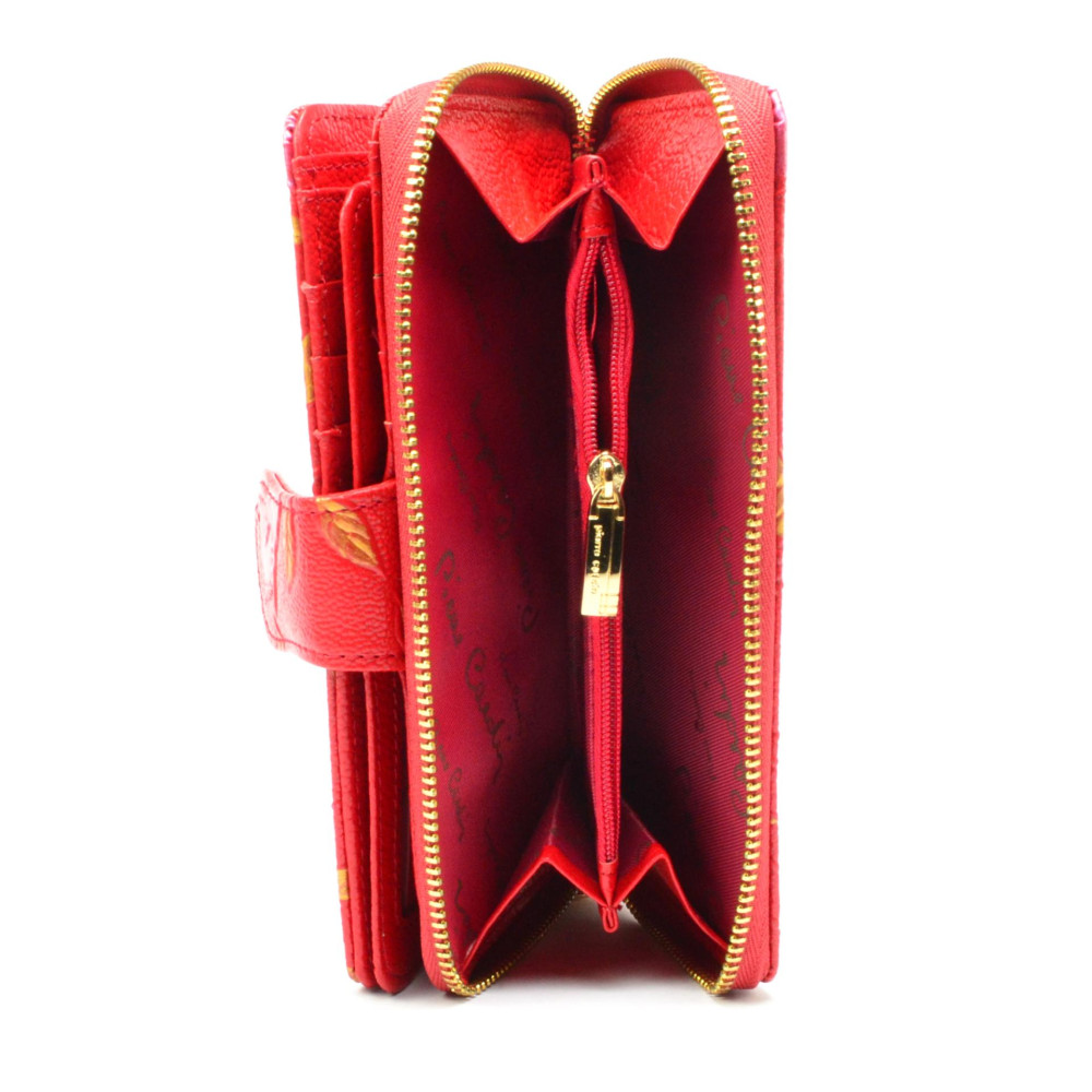 Peněženka dámská červená z pravé kůže s přezkou. Peněženka je rozdělená na dvě části. Uzavírání kožené dámské peněženky je řešenou velkou klopou a přezkou s pevným drukem. Velký mincovník této luxusní peněženky je uzavíratelný masivním zipem a je rozdělený na dvě stejné poloviny s kasičkou uprostřed. K této kožené peněžence je dárková krabička zdarma. Dámská kožená luxusní peněženka je vyrobena z pravé kůže a je značky Gregorio.