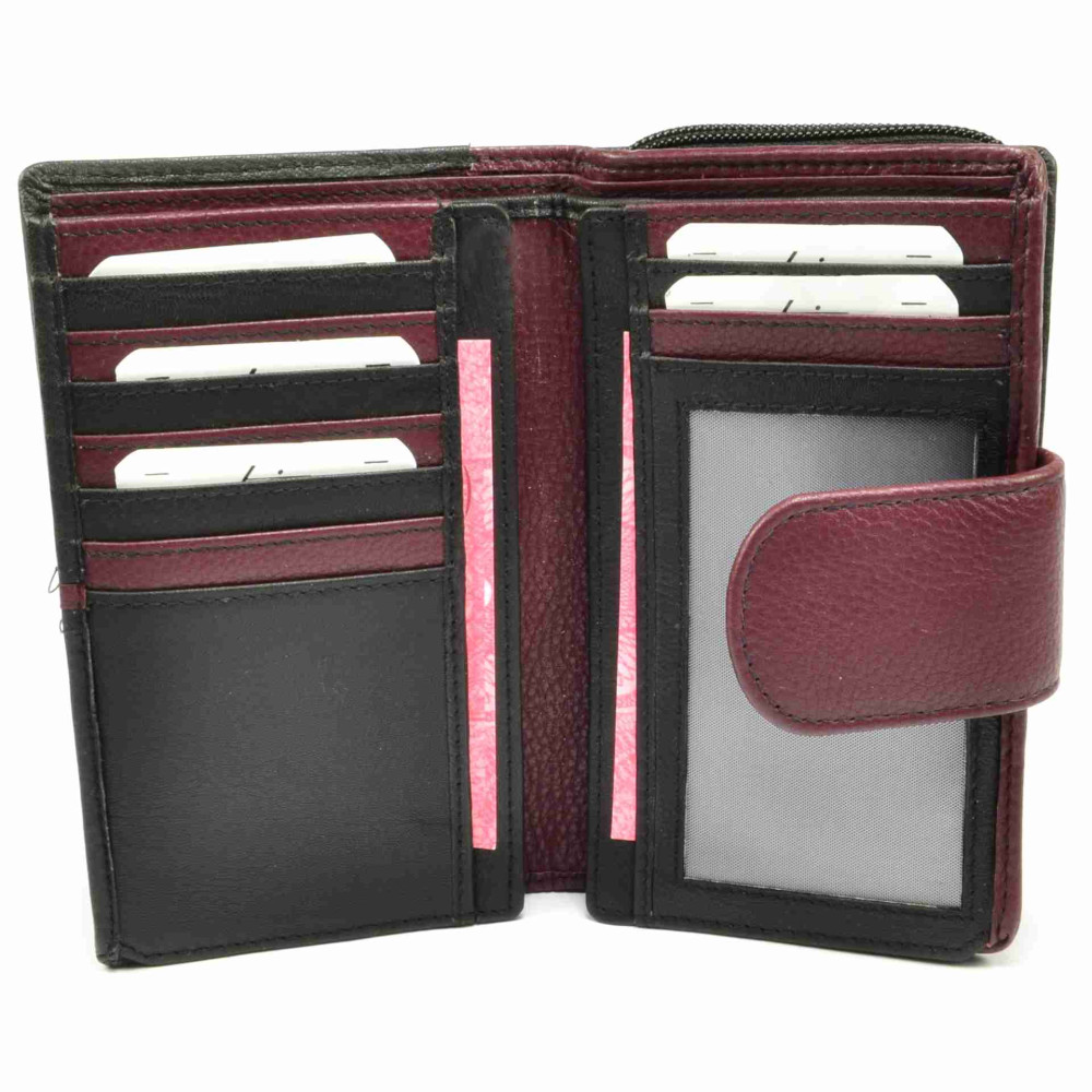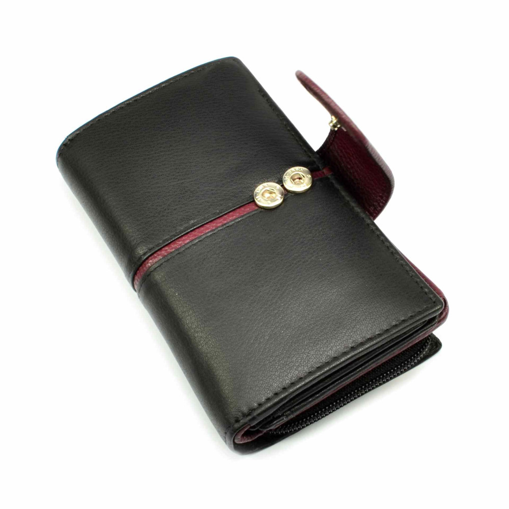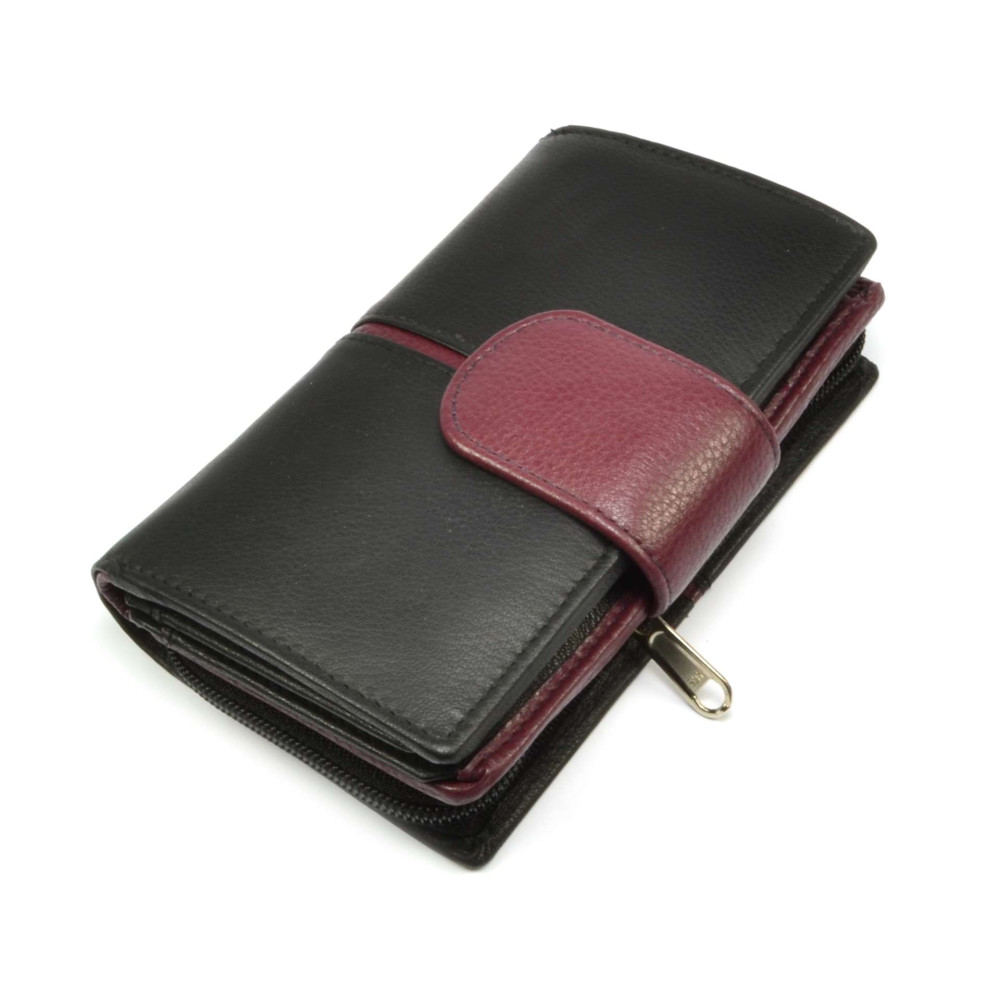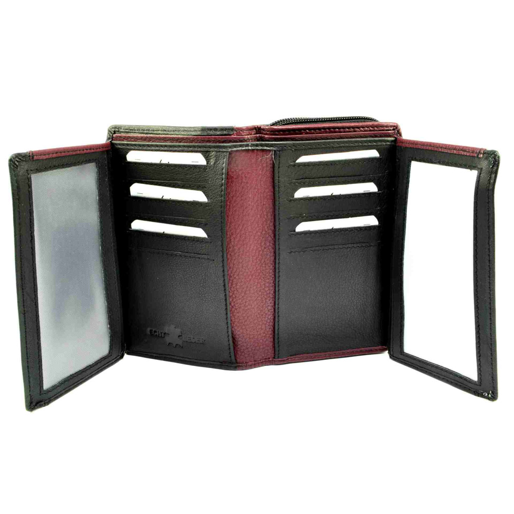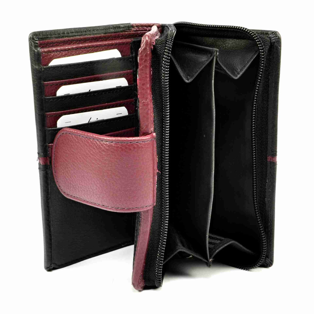 Stylová dámská peněženka černá vínovými zdobením. Peněženka se uzavírá přezkou se dvěma druky. Po otevření dásmké černé peněženky jsou přístupné všechny kapsy na karty, doklady a bankovky. Samozřejmostí je mincovník uzavíratelný na zip, který je umístěn na zadní straně peněženky a je přístupný bez nutnosti peněženku otevřít. Stylová dámská peněženka černá je vyrobena z pravé nappa kůže, má zdobení vínové barvy a je značky Dariya bags. Stylové dámské peněženky jdou opět do módy. Pořiďte si taky jednu pro sebe.