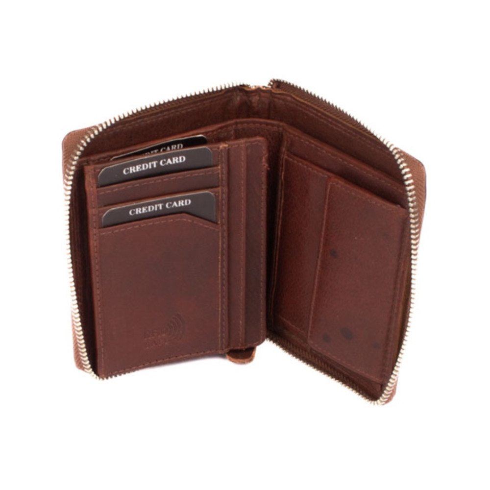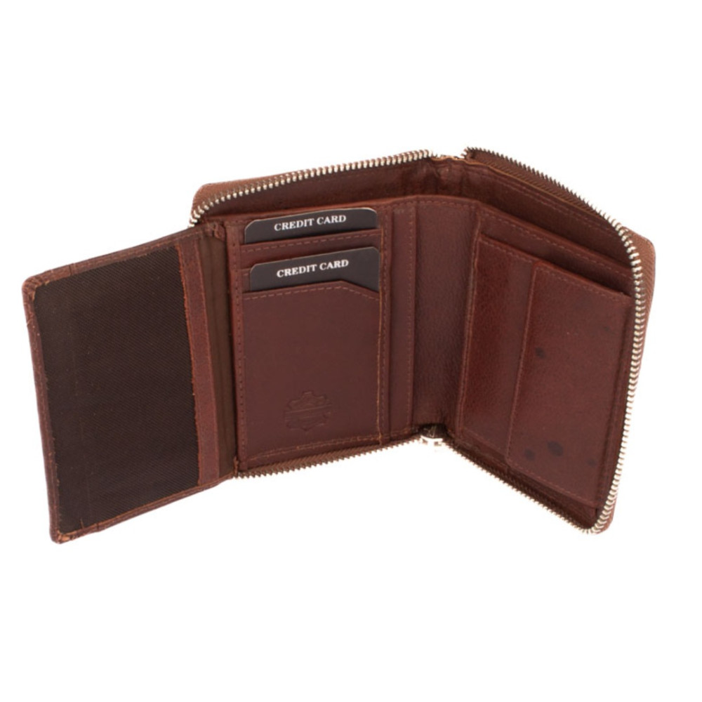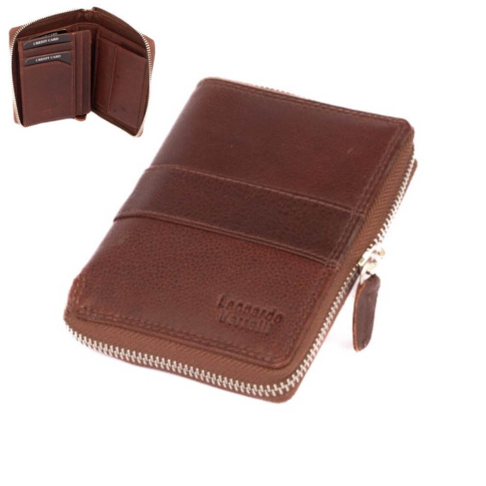 Stylová dámská peněženka hnědá na zip má masivní zip s velkým jezdcem a pořádným poutem pro pohodlné otevírání. Peněženka má uvnitř klasické uspořádání - najdete zde dostatek kapes na karty, velkou kapsu na bankovky a samozřejmě také mincovník s klopou a pevným drukem. V peněžence můžete také schovat nějaké tajnosti, k tomu jsou určené skryté kapsy. Peněženka je tmavě hnědé barvy, je značky Leonardo Verrrelli a je dodávána v dárkové krabičce. Stylová dámská peněženka hnědá je také vybavena RFID ochranou proti nechtěnému čtení karet.
