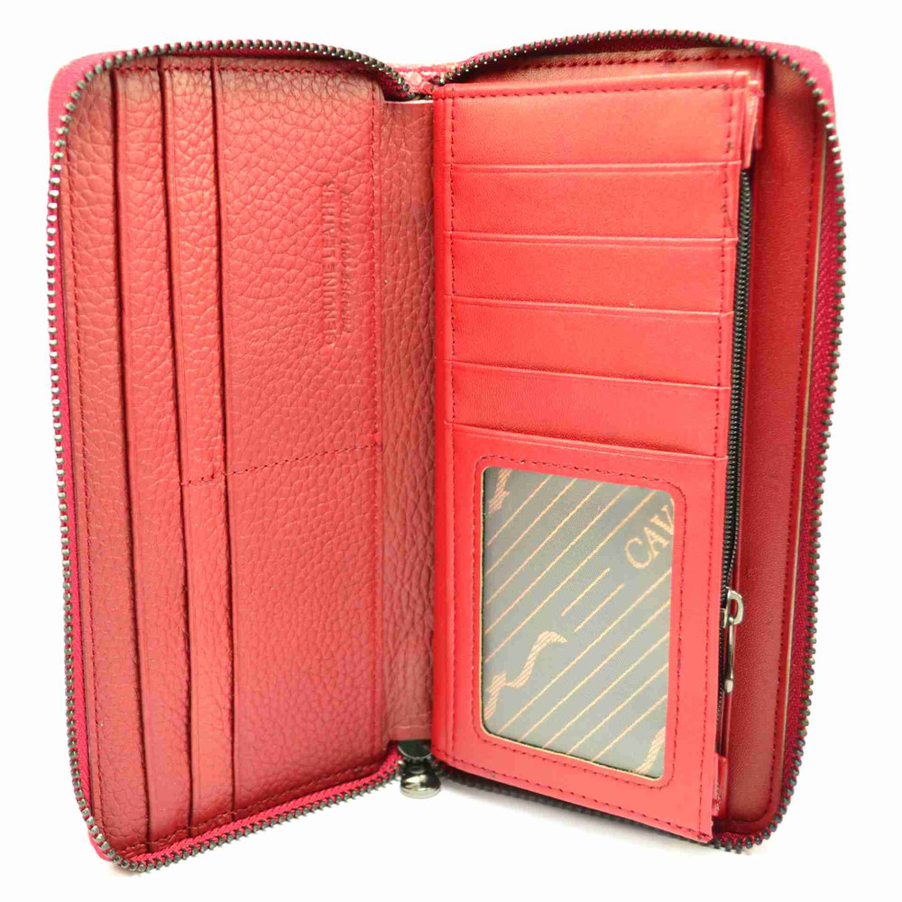 Velká dámská peněženka kožená se stane vaším oblíbeným doplňkem pro svoji jednoduchost a praktičnost. Tato peněženka uvnitř má dostatek kapes na karty a velké kapsy na bankovky. Peněženka má samozřejmně mincovník, který se uzavírá zipem. Dámská peněženka červená je vyrobená z pravé kůže uvnitř, z venku je z umělé kůže pro stálost barev. Peněženka je dodávána v dárkové krabičce a je značky 4U Cavaldi.