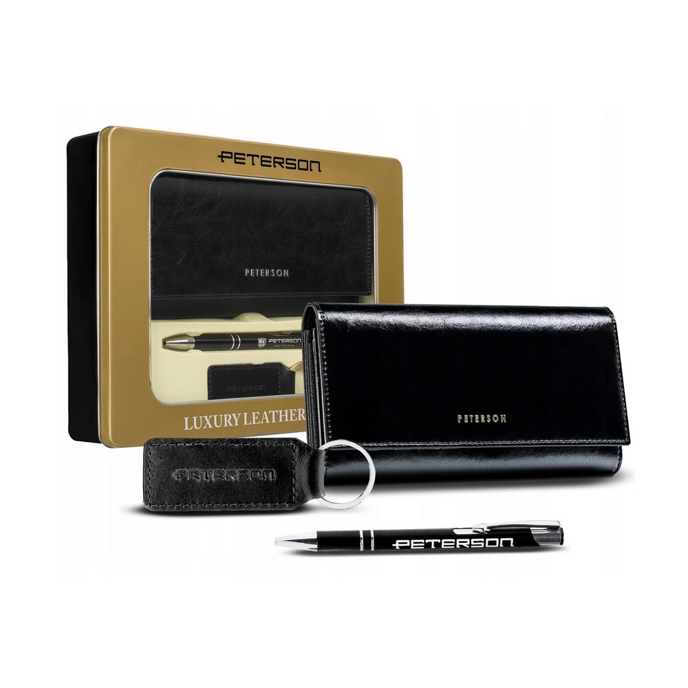 Luxusní sada dárková pro dámy se skládá z kožené peněženky, klíčenky a kuličkového pera. Sada je dodávána v dárkové kazetě.