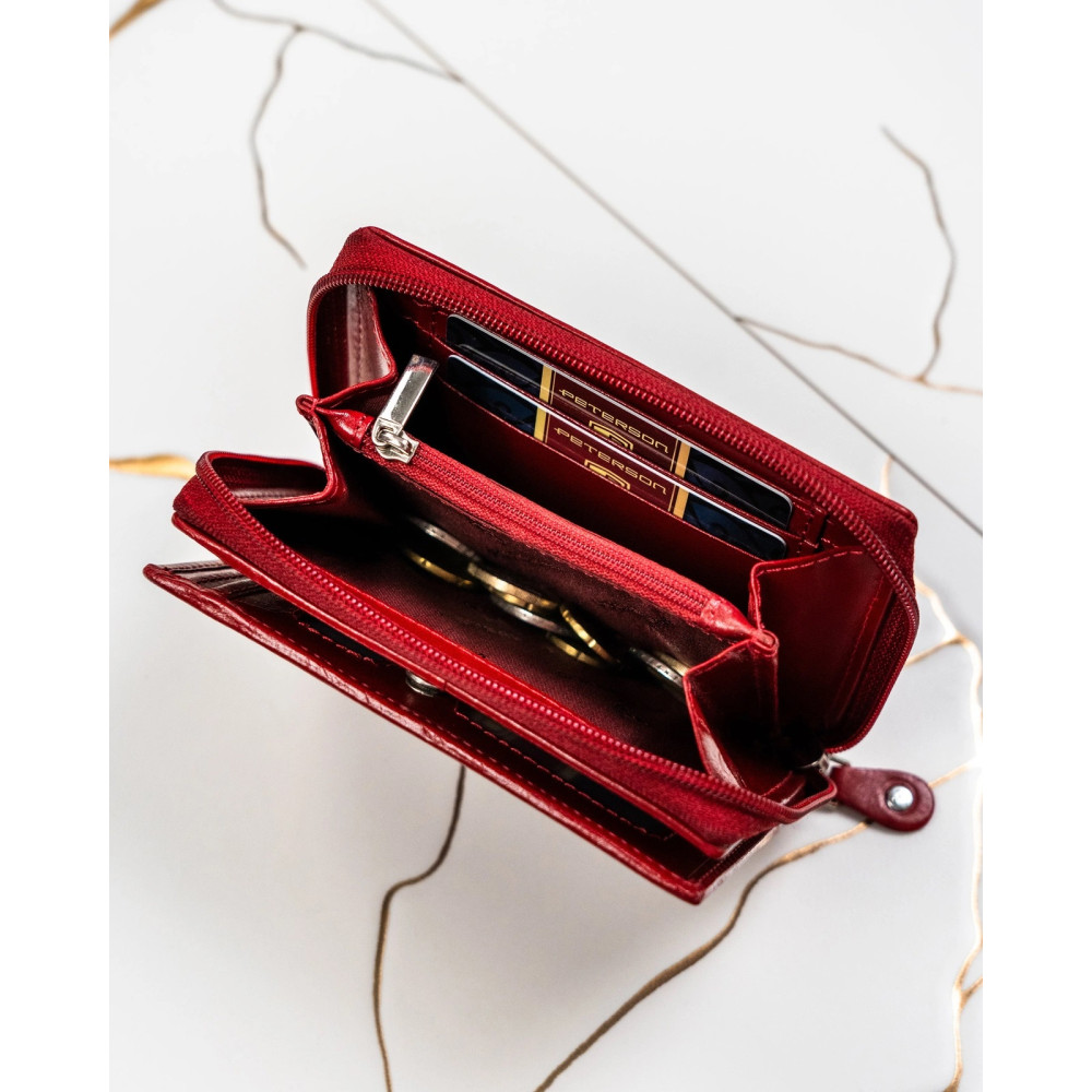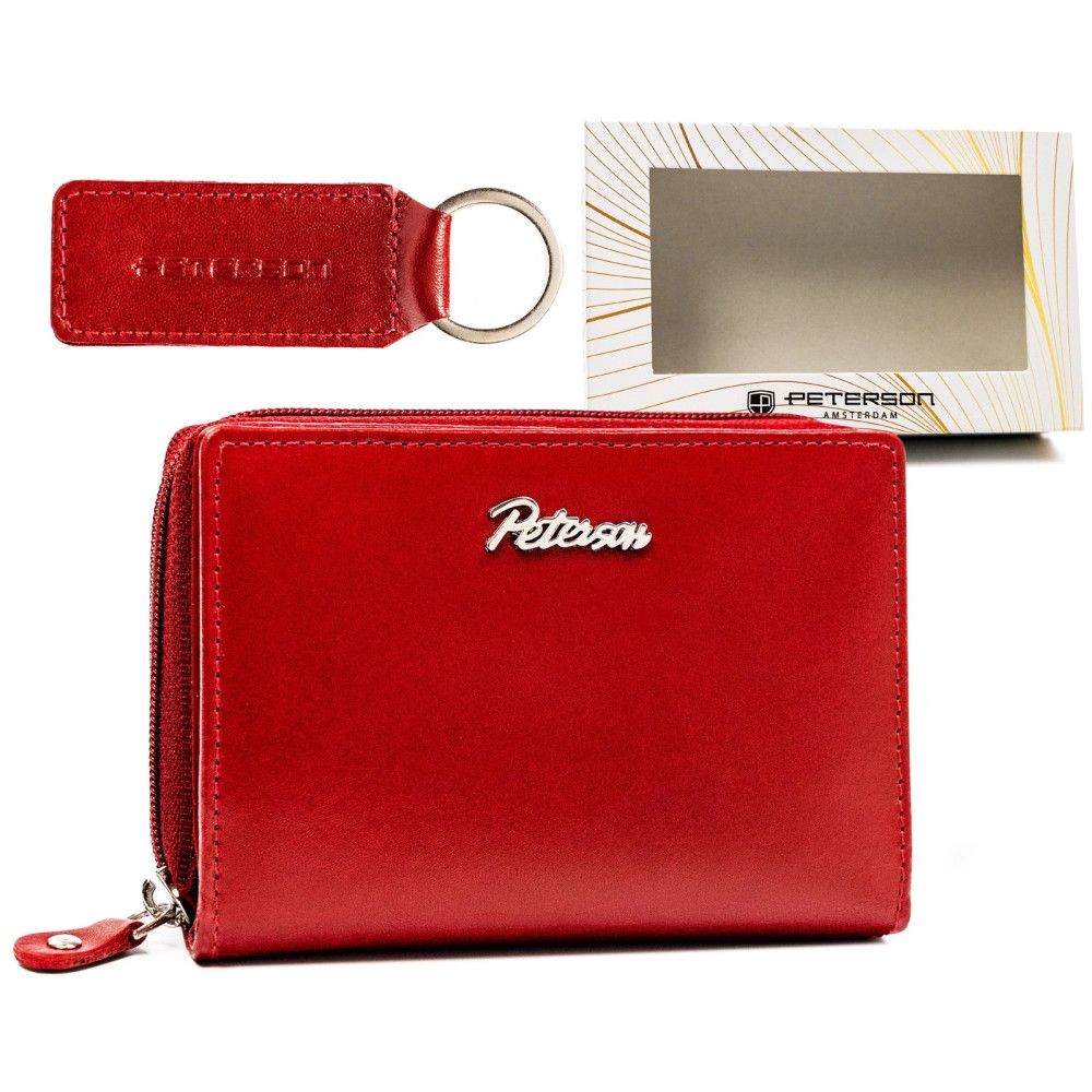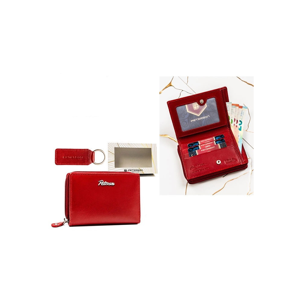 Peněženku doplňuje luxusní kožená klíčenky vyrobená v červené barvě. Na červeném poutku je upevněný kroužek sloužící k zavěšení klíčů.