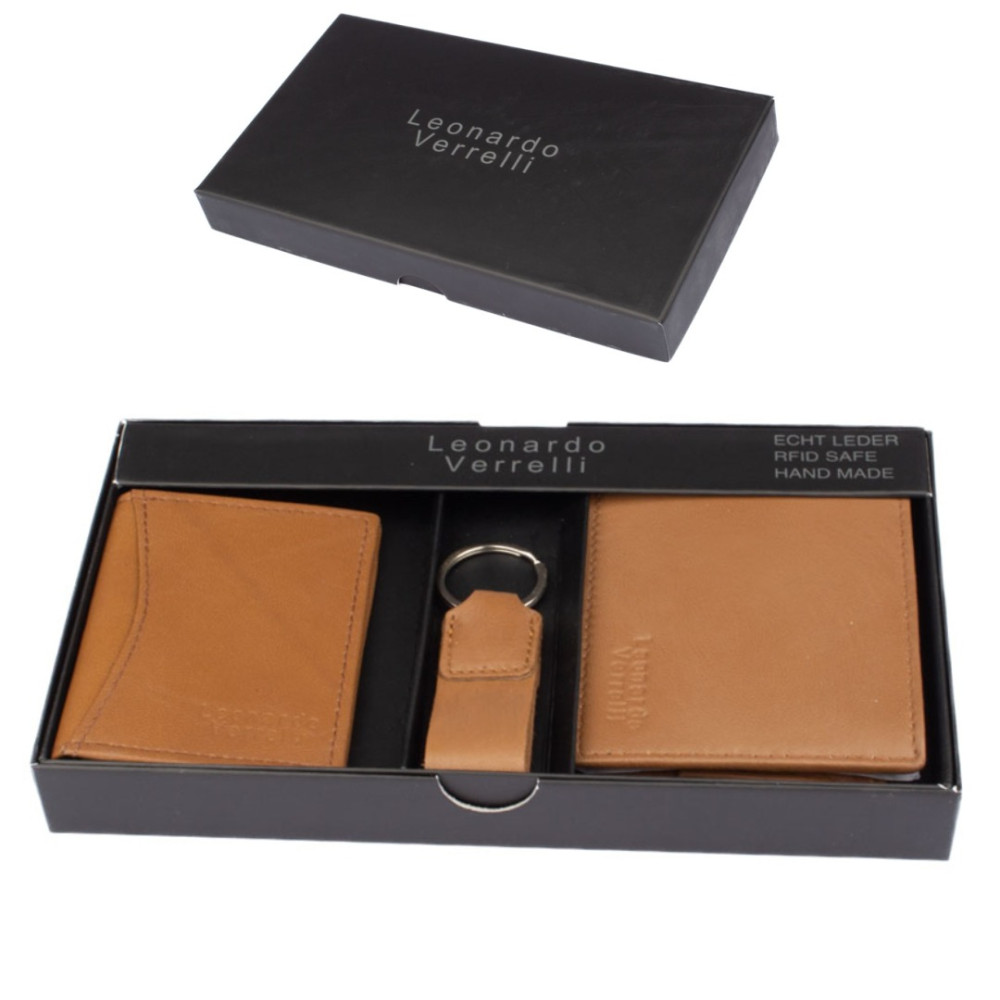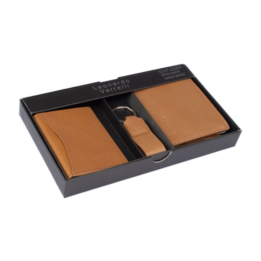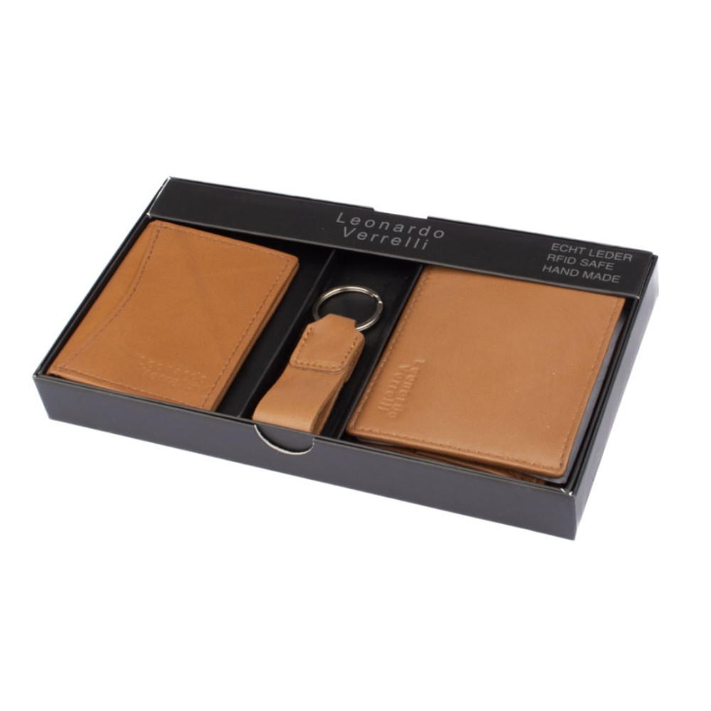 Kazeta pánská dárková obsahuje kvalitní peněženku, pouzdro na karty a přívěšek na klíče z pravé kůže v dárkové krabičce. Peněženka i pouzdro jsou vyrobeny z pravé velmi jemné kůže hnědé barvy.