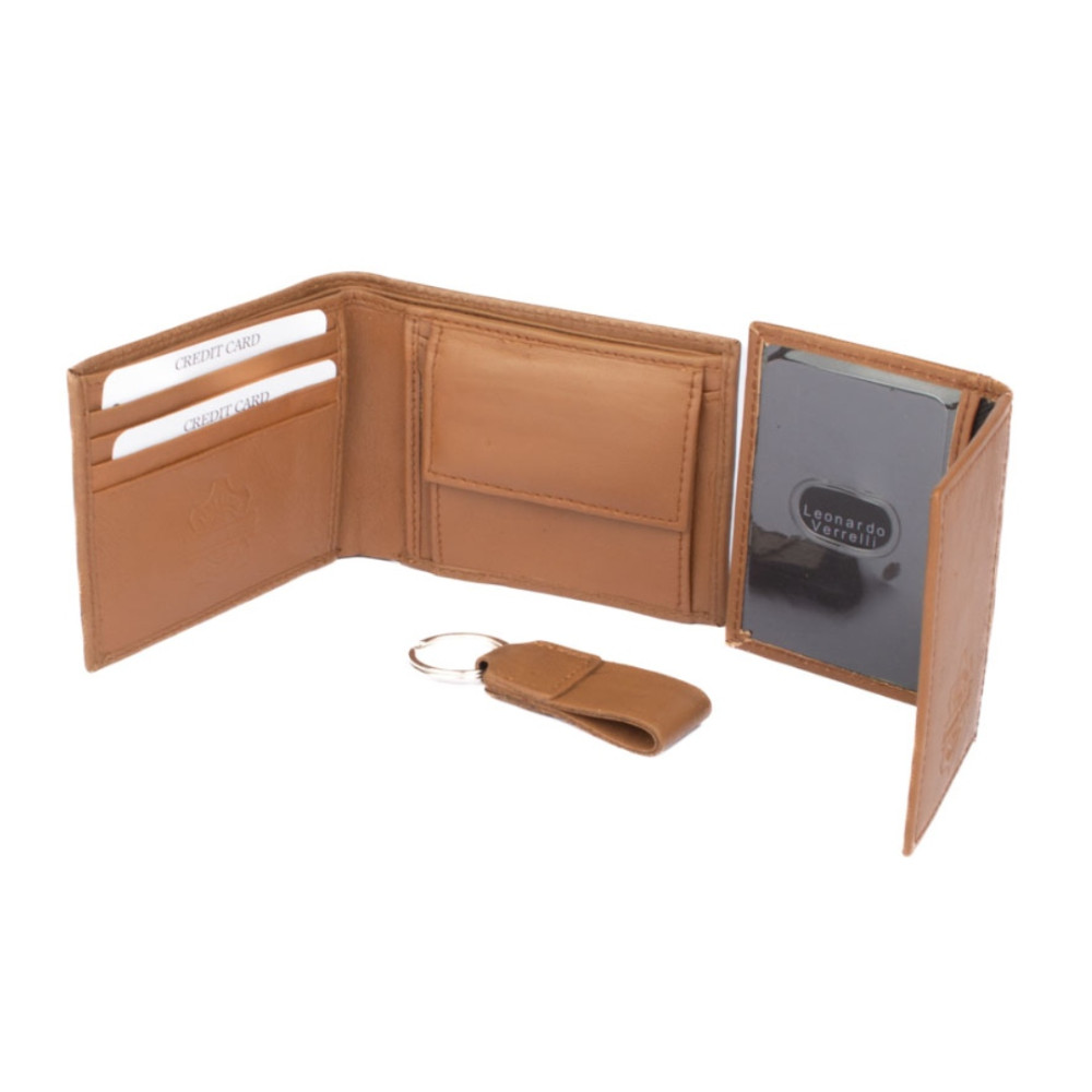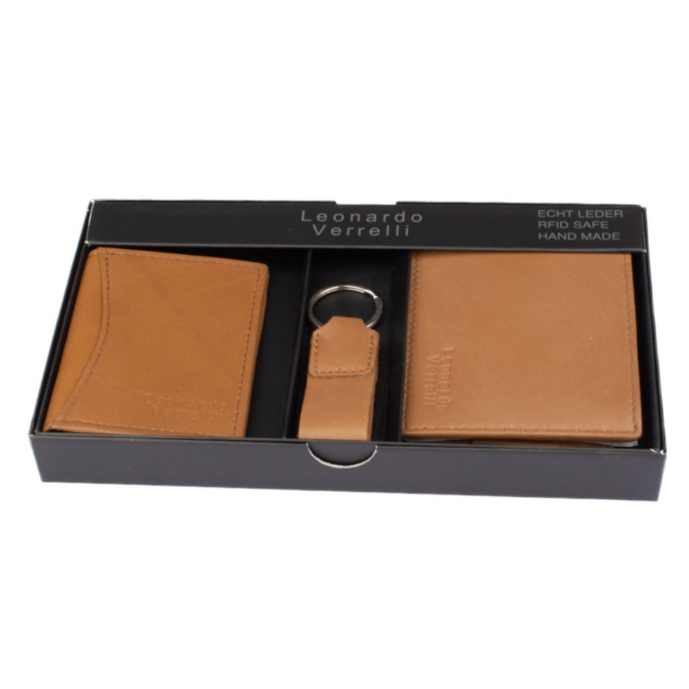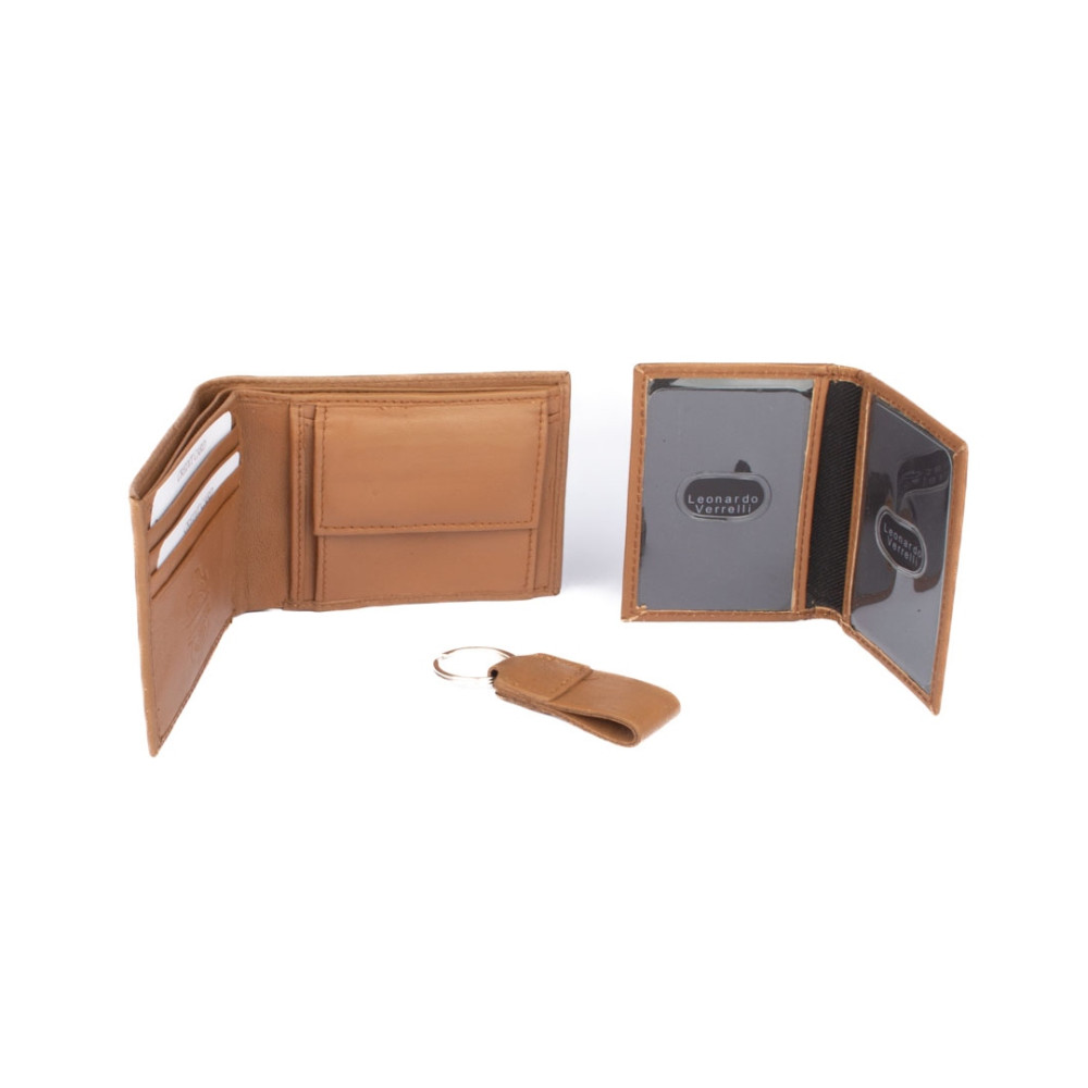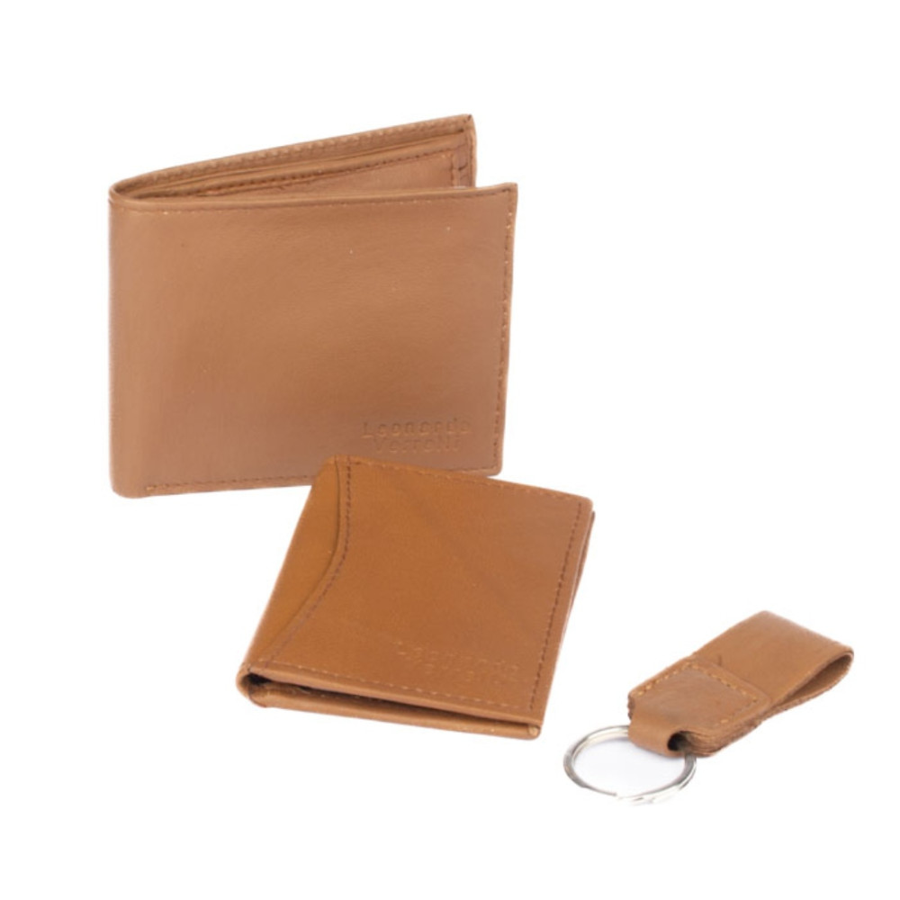 Kazeta pánská dárková obsahuje kvalitní peněženku, pouzdro na karty a přívěšek na klíče z pravé kůže v dárkové krabičce. Peněženka i pouzdro jsou vyrobeny z pravé velmi jemné kůže hnědé barvy.