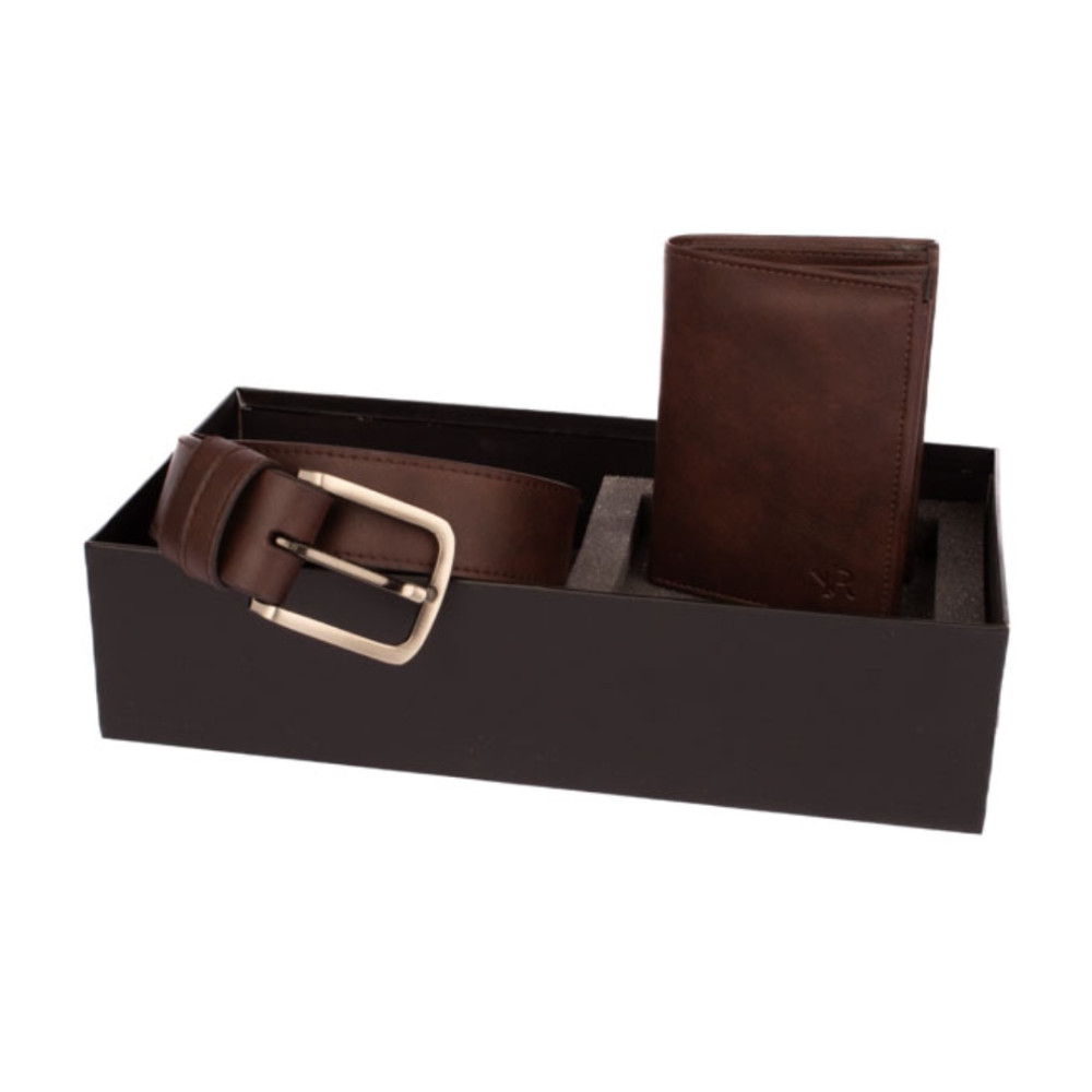 Dárková sada pánská obsahuje peněženku a kvalitní pásek. Sada je dodávána v dárkové kazetě. Pánská peněženka má uvnitř klasické uspořádání. Peněženka má mincovník uzavíratelný pevným drukem. Najdete zde dostatek kapes na platební karty. Pásek i peněženka jsou tmavě hnědé barvy a jsou vyrobené z umělé kůže.