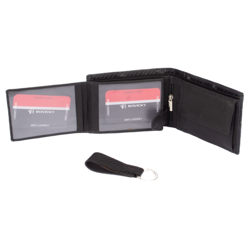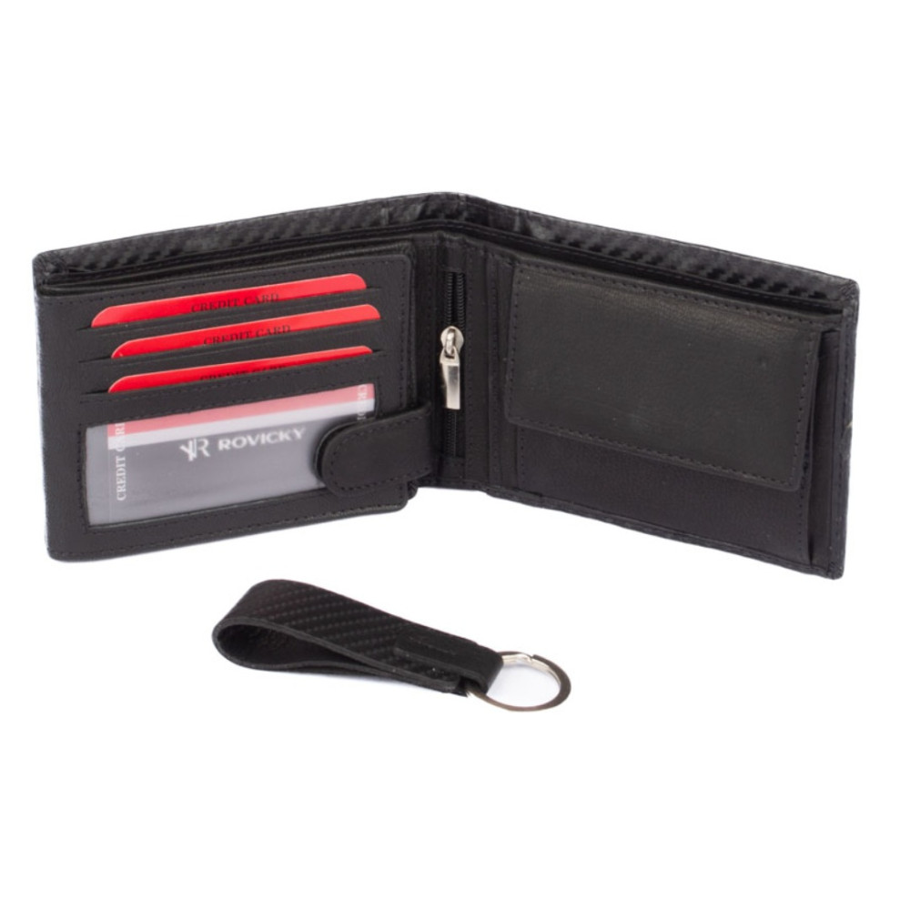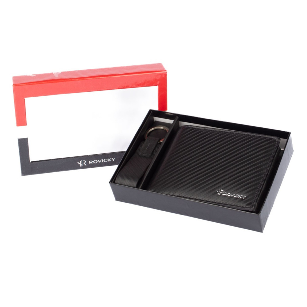 Luxusní sada pánské peněženky obsahuje nádhernou pánskou peněženku, kterou doplňuje klíčenka. Oba předměty jsou vyrobené z pravé kůže a zabalené v luxusní dárkové krabičce. Peněženka má na povrchu jemné vzorování.