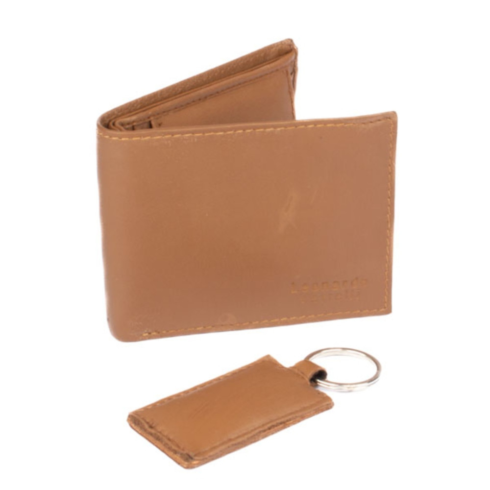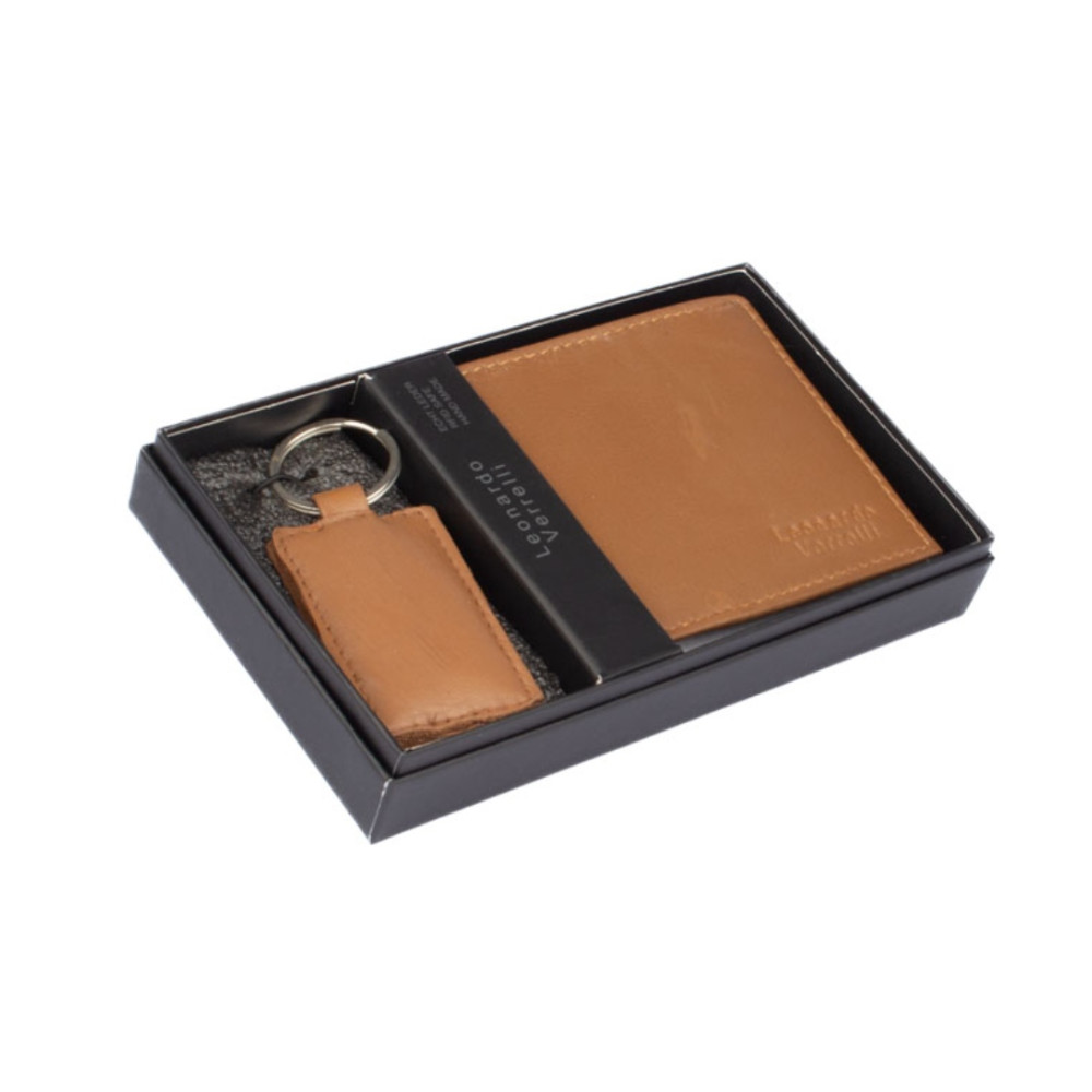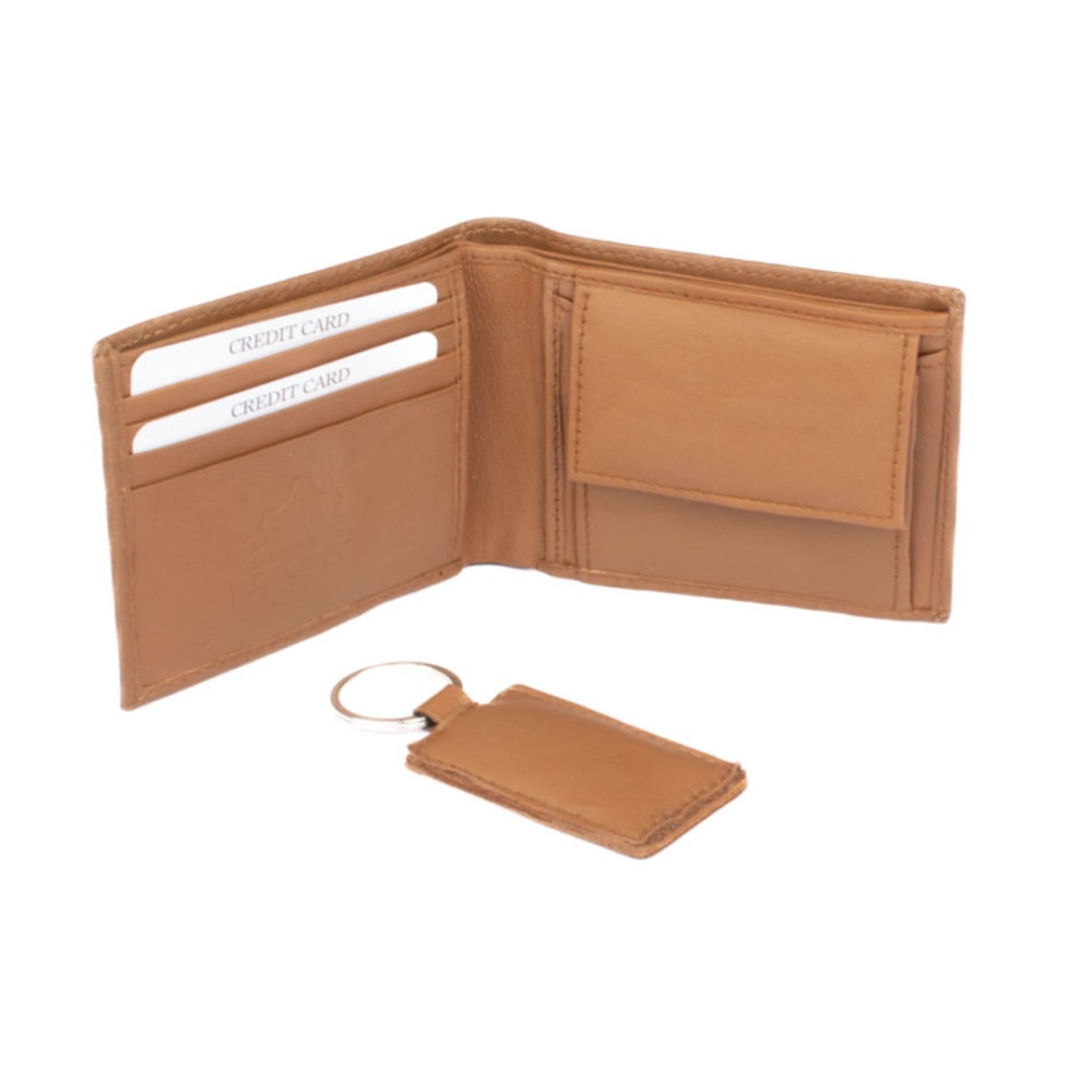 Pánská dárková sada obsahuje kvalitní peněženku a přívěšek na klíče z pravé kůže v dárkové krabičce. Peněženka i přívěsek jsou vyrobeny z pravé velmi jemné kůže světle hnědé barvy.
