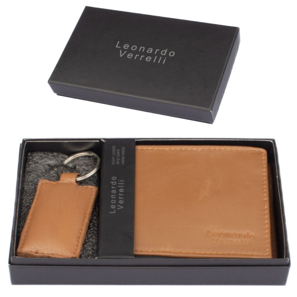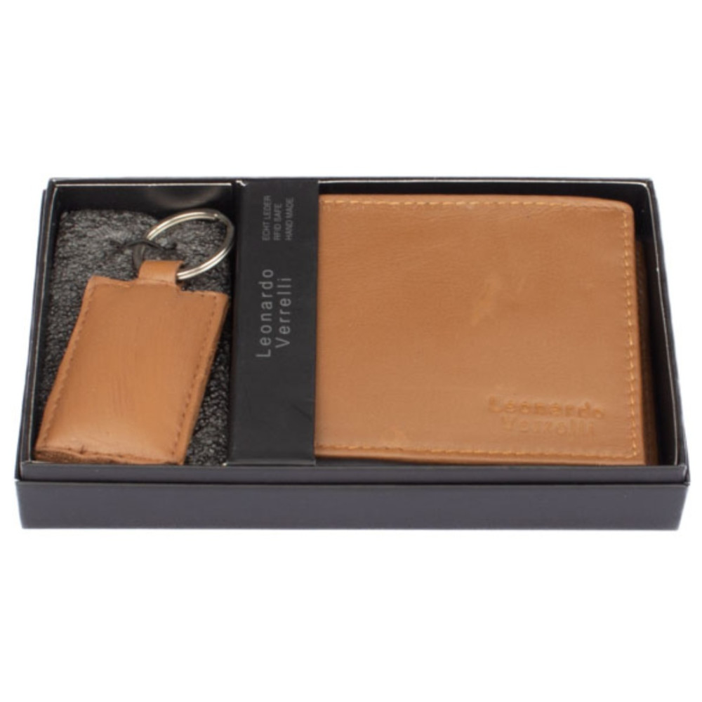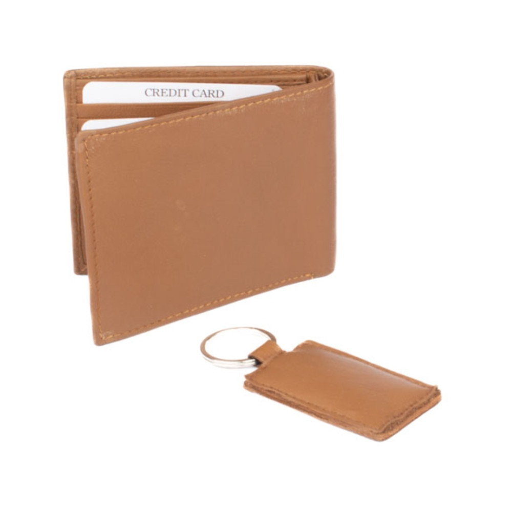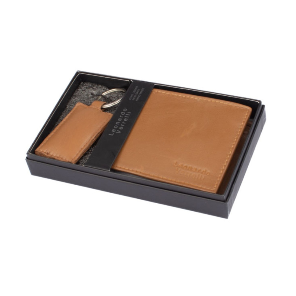 Pánská dárková sada obsahuje kvalitní peněženku a přívěšek na klíče z pravé kůže v dárkové krabičce. Peněženka i přívěsek jsou vyrobeny z pravé velmi jemné kůže světle hnědé barvy.
