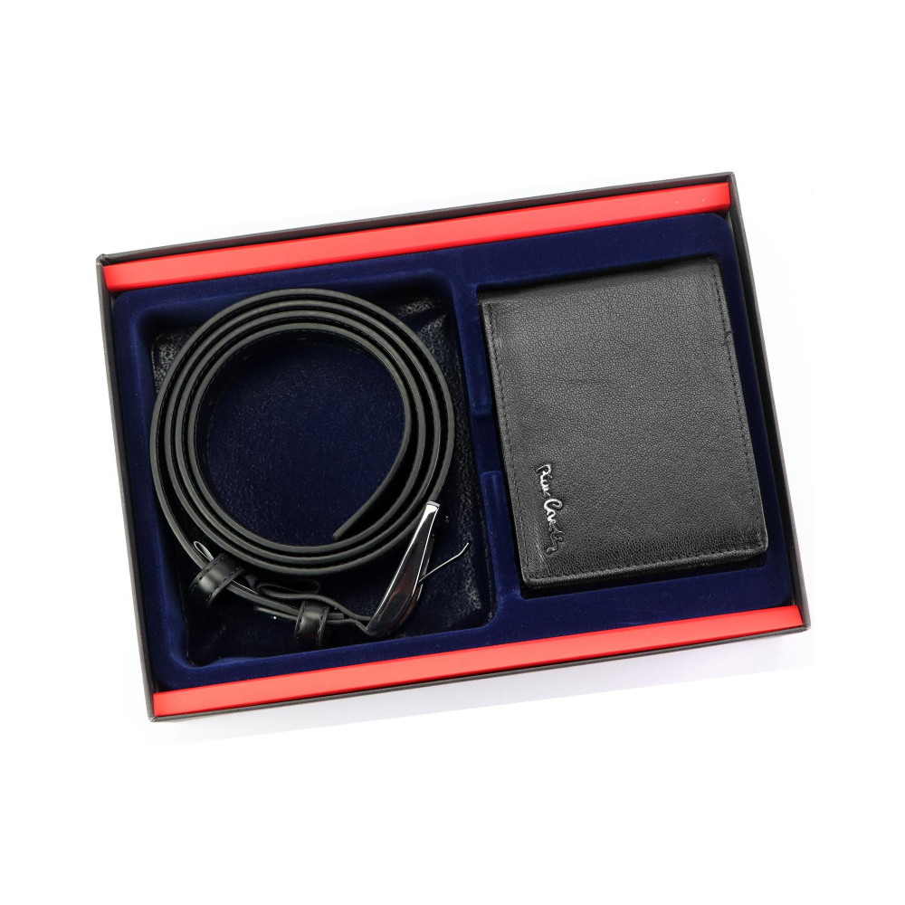 Dárková pánská sada se skládá z kožené peněženky a koženého pásku. Sada je dodávána v dárkové kazetě. Pánská kožená peněženka má uvnitř klasické uspořádání. Najdete zde dostatek kapes na platební karty, průhledné kapsy na doklady i kapsy na bankovky. V peněžence je uzaviratelný mincovník.