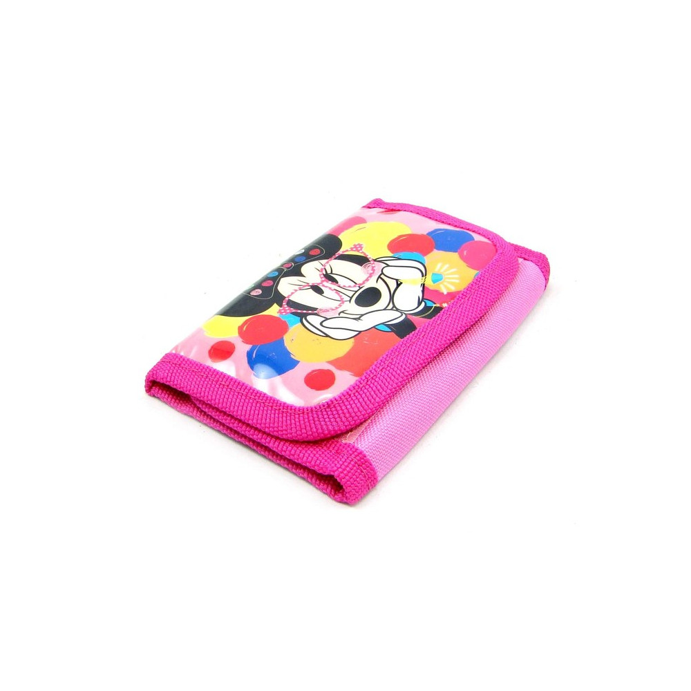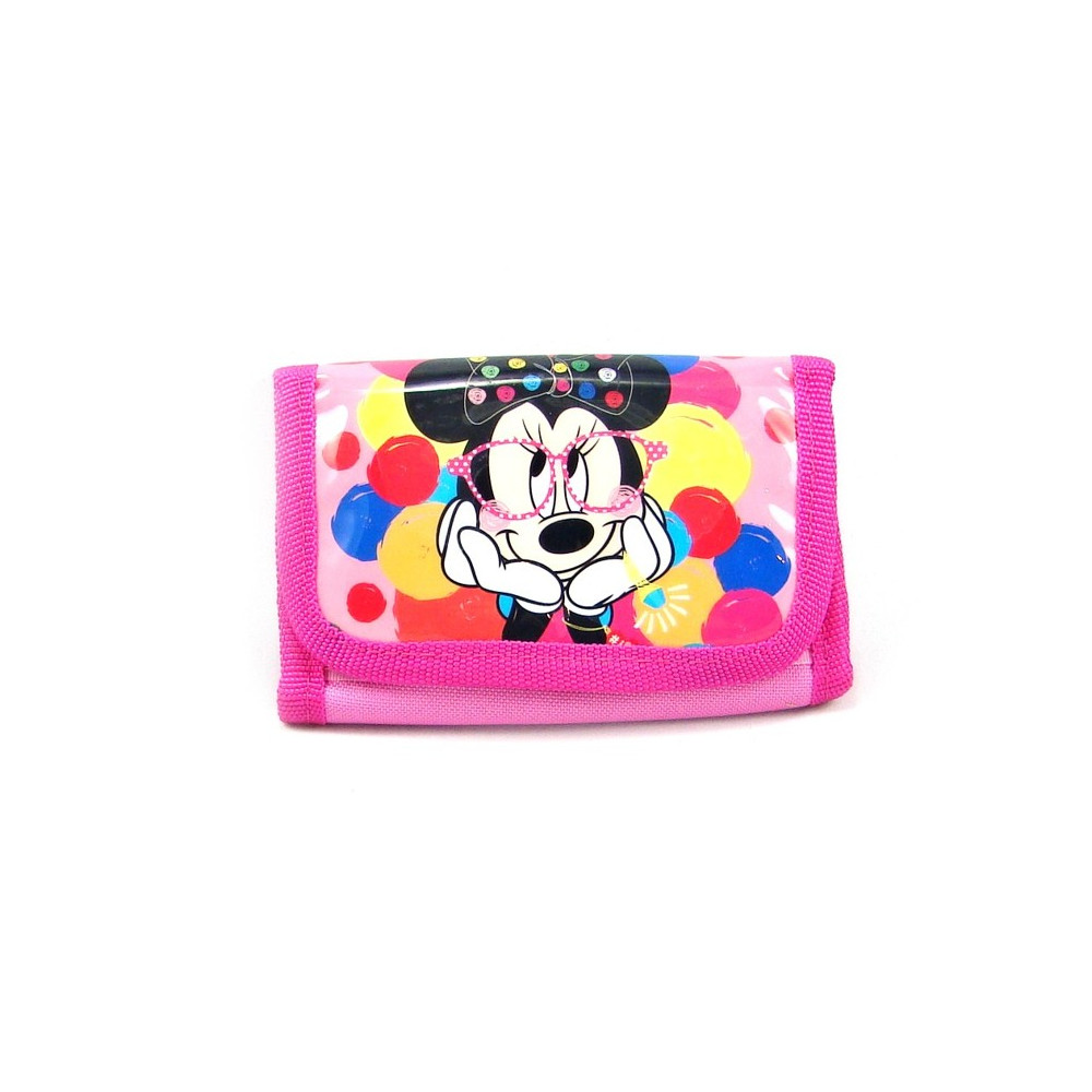 Dívčí peněženka se zapínáním na suchý zip a obrázkem oblíbené postavičky Minnie. Po otevření má peněženka mincovník uzavíratelný na zip, dvě kapsy na karty nebo průkazky a velkou kapsu na bankovky. Materiál peněženky je 100% polyester. Peněženka je tmavě růžové barvy. Peněženka najde uplatnění i jako dámská peněženka s minnie mouse.