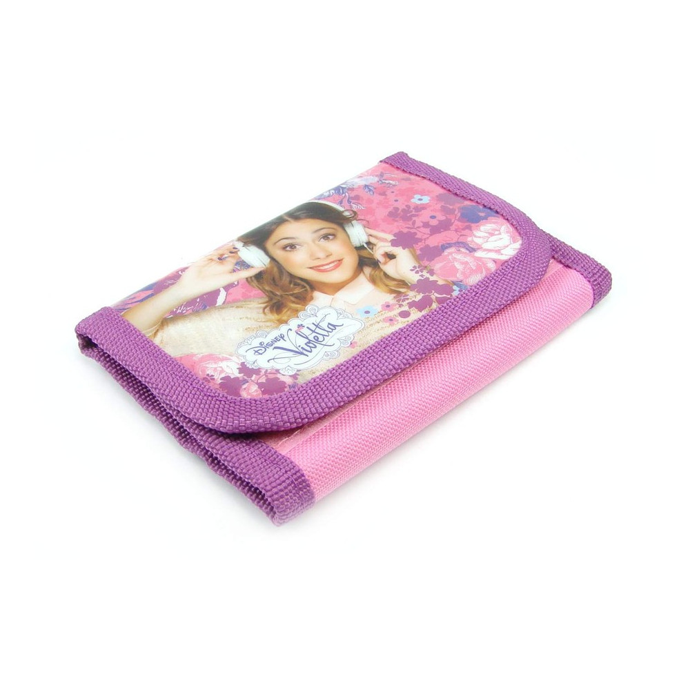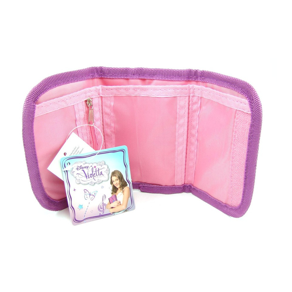 Dívčí peněženka se zapínáním na suchý zip a potiskem Violetta. Po otevření má peněženka mincovník uzavíratelný na zip, dvě kapsy na karty nebo průkazky a velkou kapsu na bankovky. Materiál peněženky je 100% polyester. Barva peněženky je růžová.