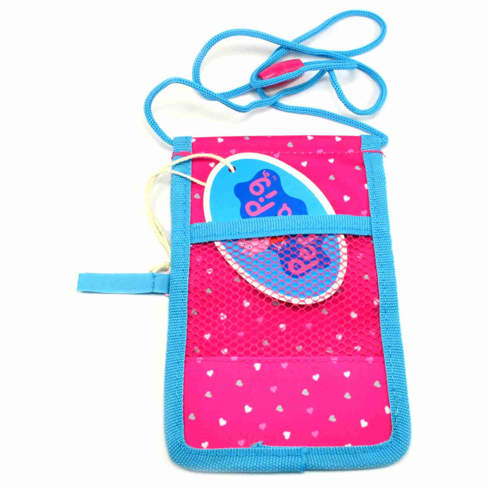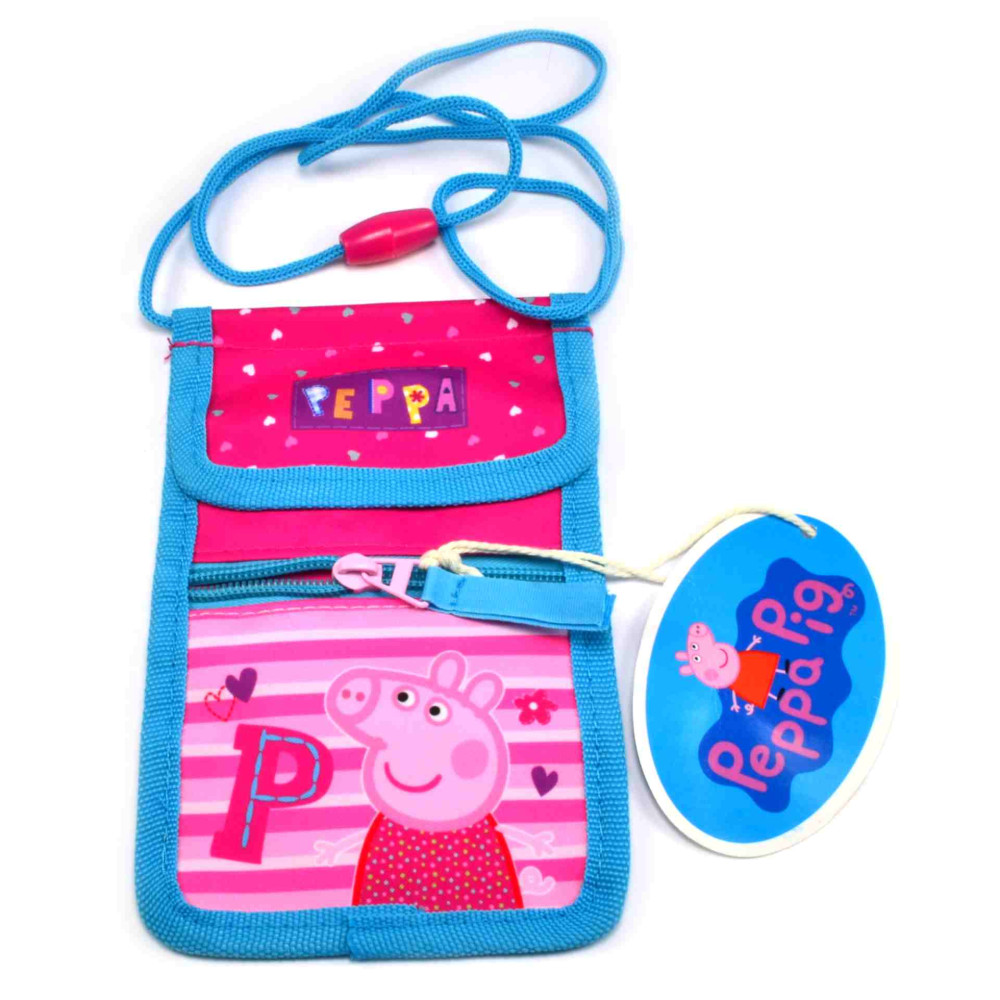 Kapsička na krk pro děti s prasátkem Pepou a zapínáním na suchý zip. Po otevření má kapsička na krk pro děti jednu velkou kapsu, do které schovají děti všechny jejich poklady. Na zadní straně je průhledná kapsa a na přední straně je další kapsa s uzavíráním na zip. Materiál peněženky je 100% polyester.