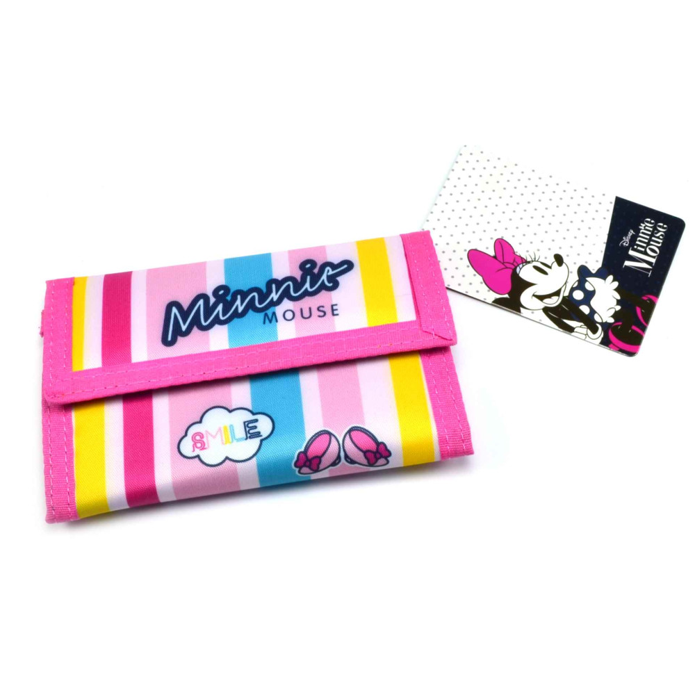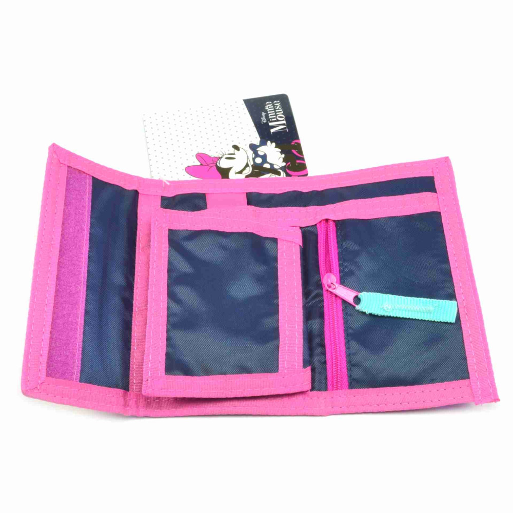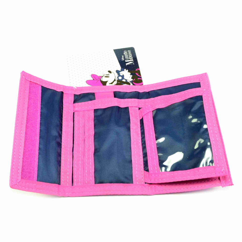 Dětská Minnie mouse peněženka se zapínáním na suchý zip. Po otevření má peněženka s Minnie Mouse mincovník uzavíratelný na zip, dvě kapsy na karty nebo průkazky a jednu průhlednou kapsu. Samozřejmostí je velká kapsa na bankovky. Na poutku u bankovek je kroužek k uchycení klíčů. Materiál peněženky je 100% polyester. PS: peněženka je oblíbená i jako dámská peněženka Minnie Mouse.