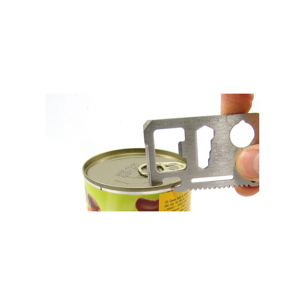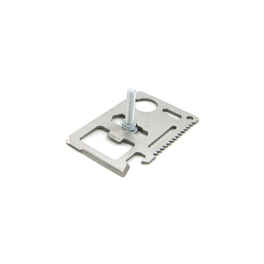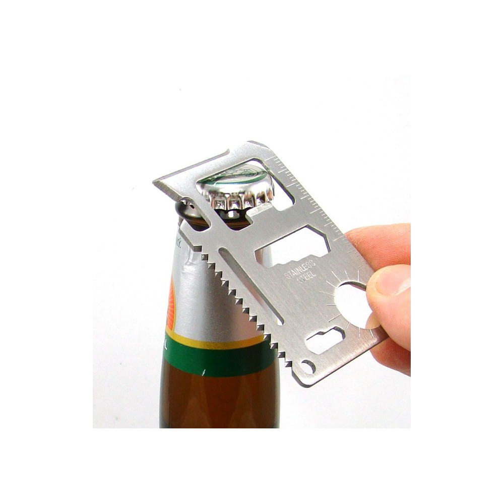 Máte potřebu nosit u sebe nůž, pilku, šroubovák, klíče, pravítko, úhloměr, otvírák na láhve nebo konzervy? Tak to všechno je obsažené v této multifunkční kartě, která se vejde do peněženky. Aby jste si nepořezali peněženku nebo kapsu je karta uložena v ochranném koženém obalu. Karta má očko pro uchycení například na klíče. Multifunkční karty jsou ideálními pomocníky v nečekaných situacích.