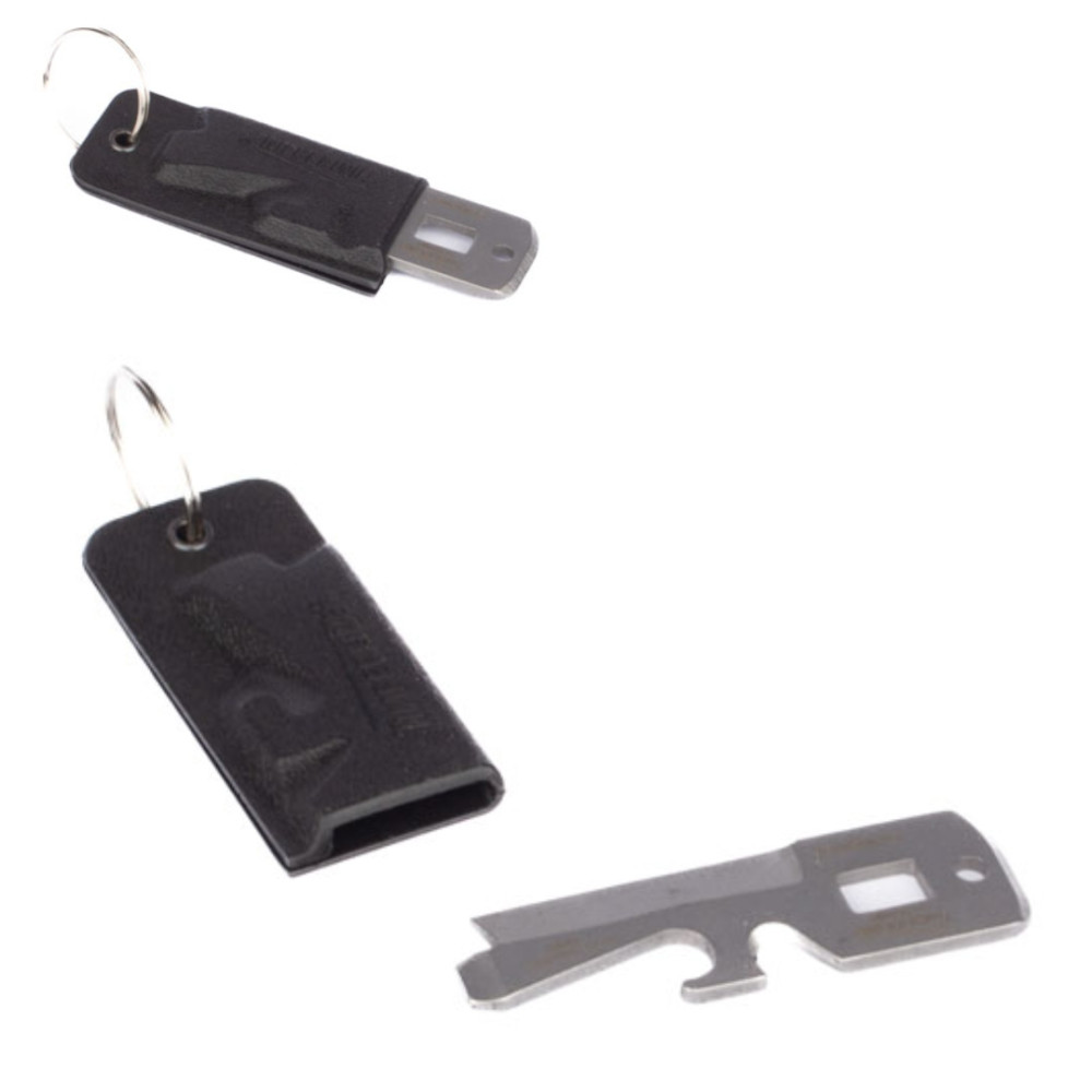 Multifunkční nástroj v podobě přívěsku na klíče má několik základních funkcí pro každodenní použití (otvírák na pivo, plochý šroubovák, rovný nůž, konkávní nůž a 6mm klíč na kyslík). Plastové pouzdro umožňuje bezpečné nošení v kapse s klíči.