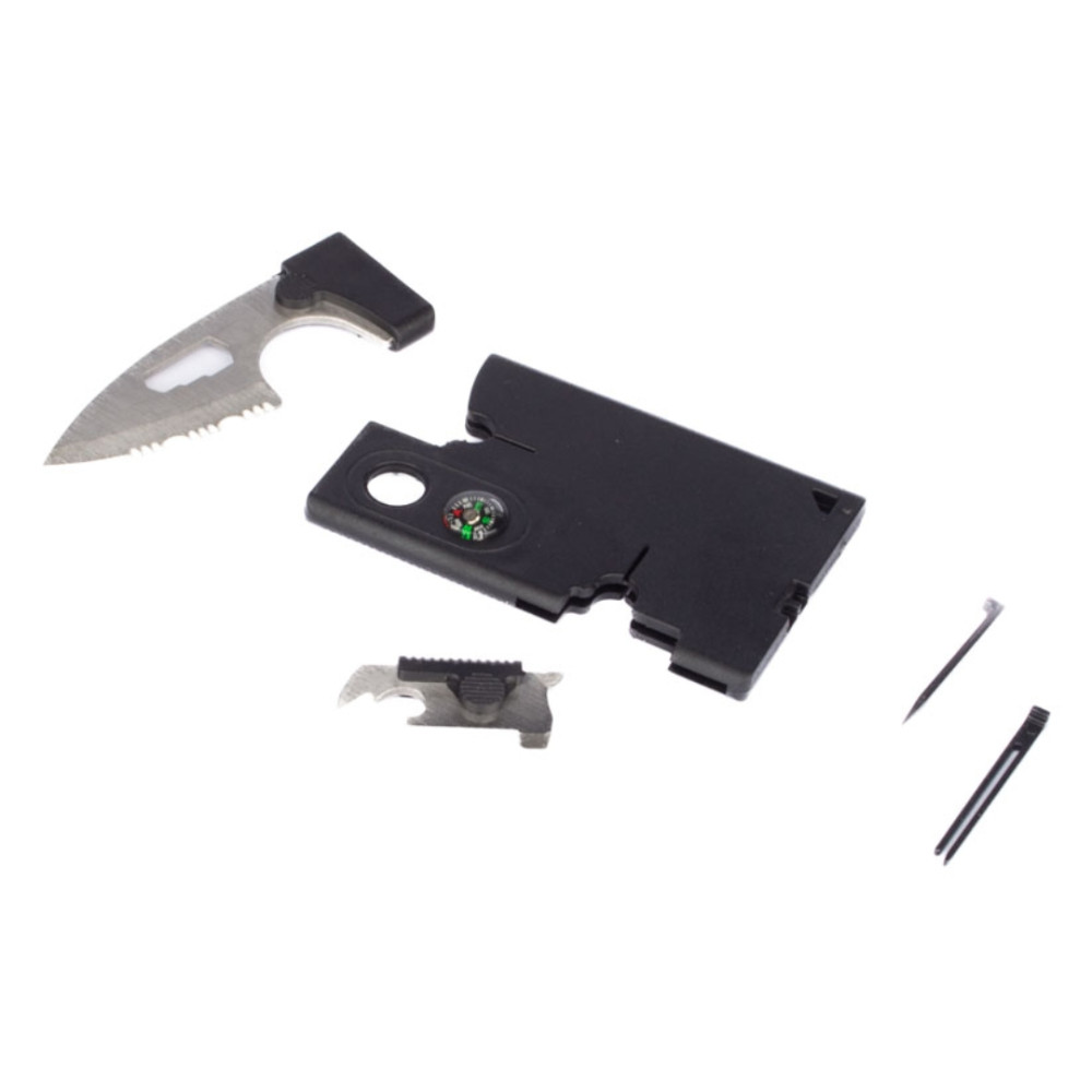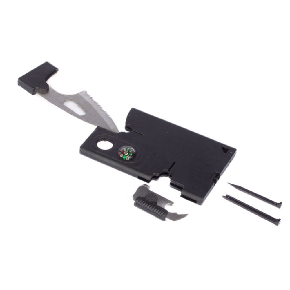 Máte potřebu nosit u sebe nožík, pimzetu, lupu, kompas a další nástroje? Tak to všechno je obsažené v této multifunkční kreditní kartě, která se vejde do peněženky. Karta má očko pro zavěšení na klíče nebo batoh Aby jste si nepořezali peněženku nebo kapsu je karta uložena v ochranném plastovém obalu. Multifunkční kreditní karty jsou ideálními pomocníky v nečekaných situacích.