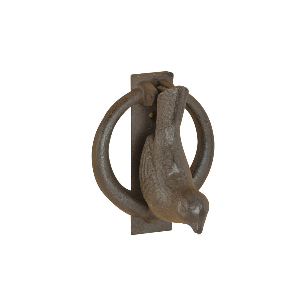 Hnědé litinové klepadlo na dveře s ptáčkem - 9x8x11 cm