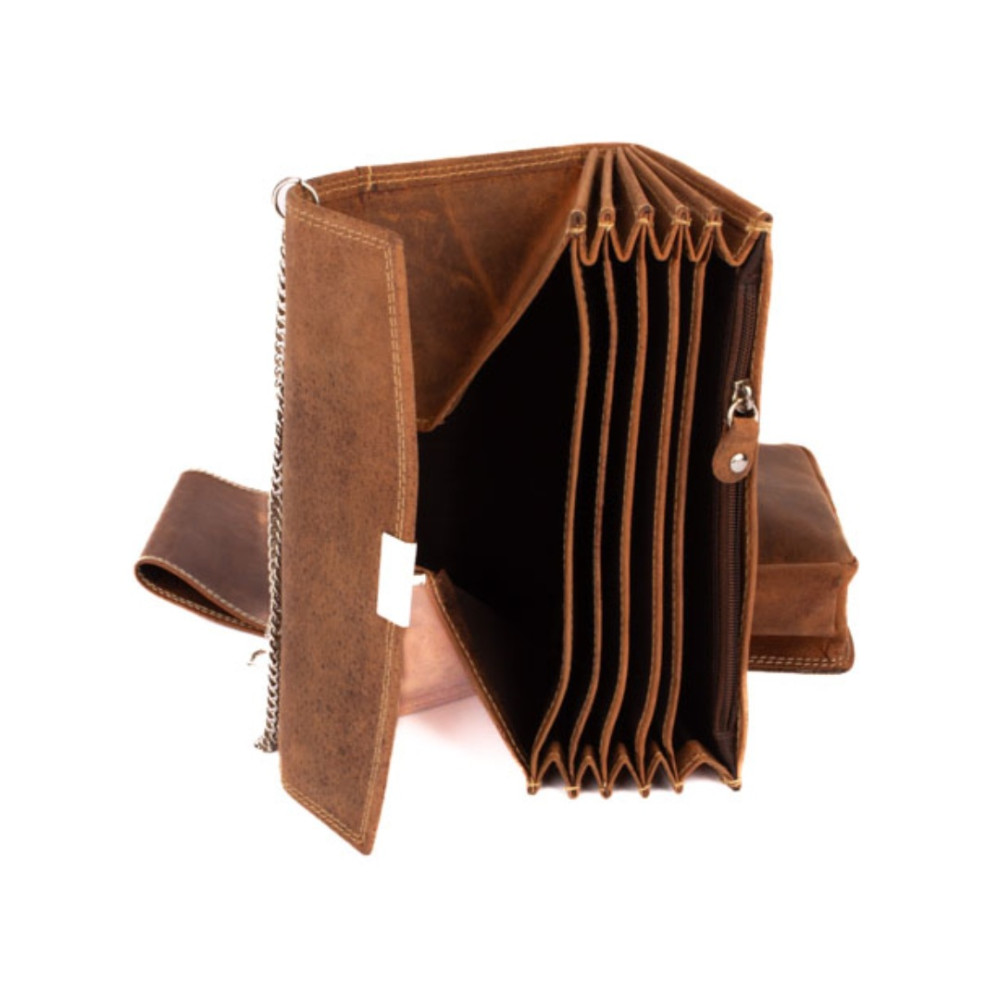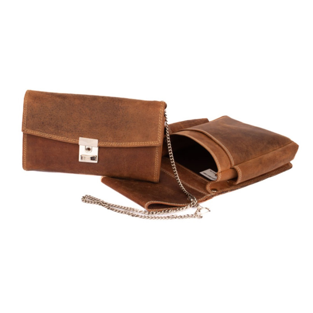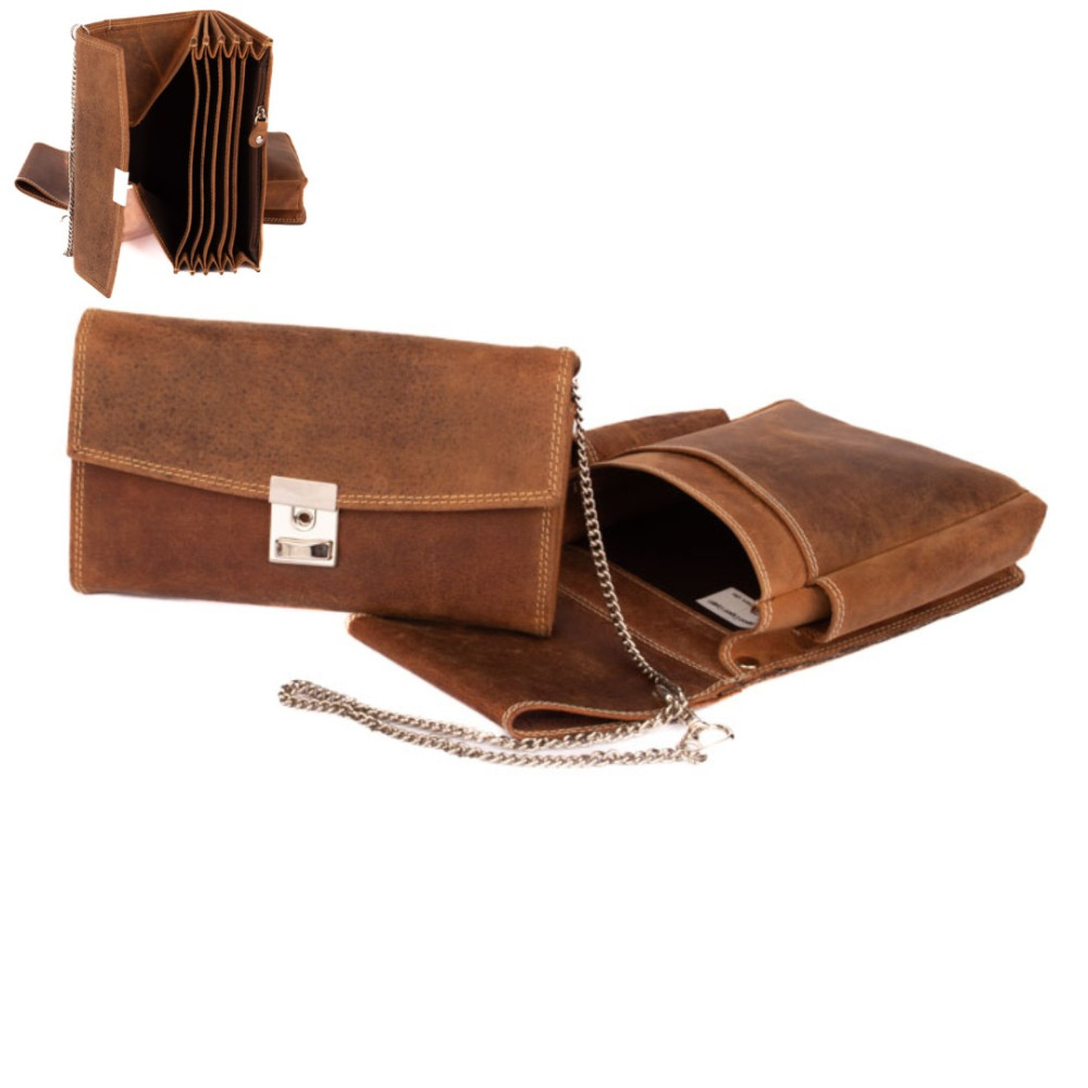 Peněženka i kapsa jsou vyrobené z pravé masivní kůže hnědé barvy.