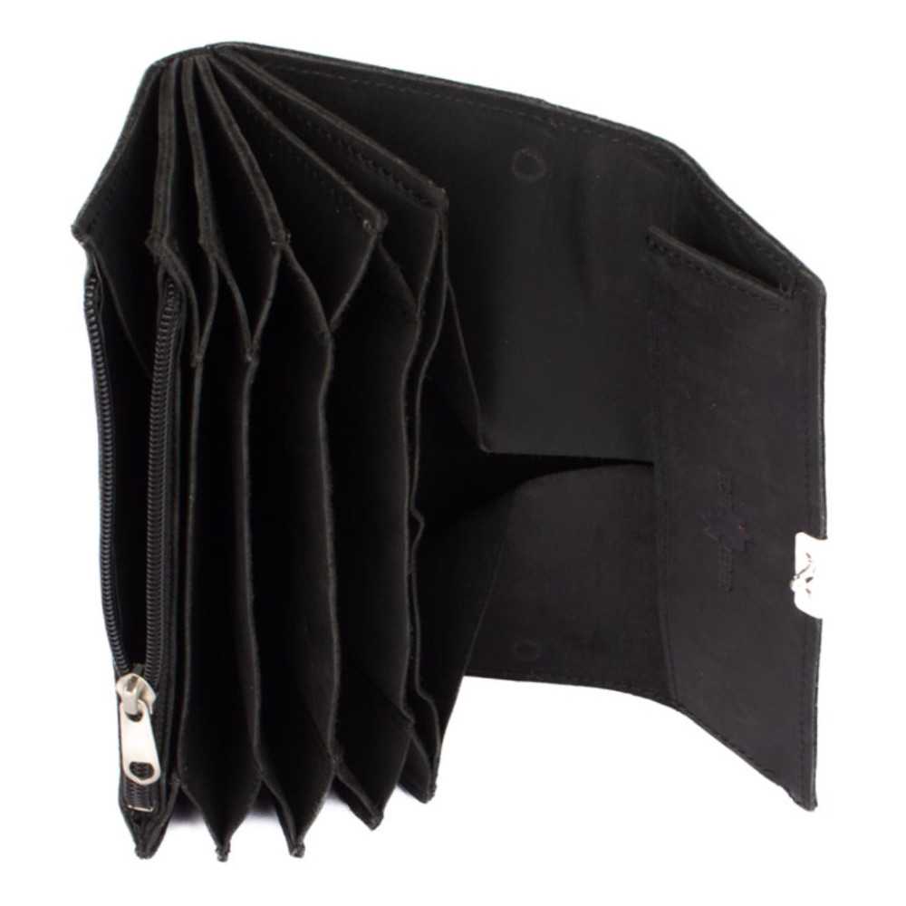Klasická kvalitní kasírka peněženka černá vyrobená z pravé kůže s dostatkem kapes. Kasírka má velký mincovník prošitý tak, aby z něj mince nevypadávaly. Kasírka peněženka nemá očko pro uchycení řetízkem. Zavírání kasírky je na tři polohy, podle toho, jak plná zrovna je...