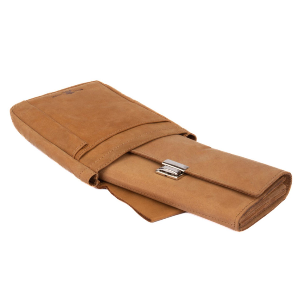 Klasická kvalitní číšnická kapsa vyrobená z pravé kůže s velkou kapsou. V kapse je očko pro připevnění řetízku na kasírku. Tato číšnická kapsa má ještě jednu kapsu na účtenky a jednu kapsu na tužku. Pouzdro na kasírku má rozměry vhodné pro každou číšnickou peněženku. Pohodlně do ní strčíte kasírku o rozměrech 18 x 14 cm.