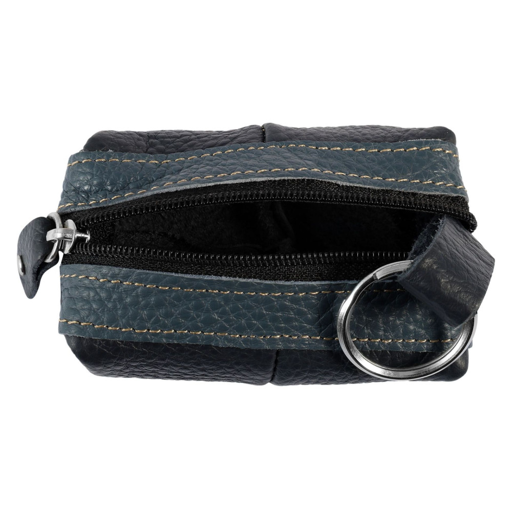 Součástí klíčenky jsou dvě kapsičky opatřené zipem, který snadno uzavře obsah jednotlivých částí klíčenky. V jedné kasičce je kožené poutko s kovovým kroužkem určeným na zavěšení klíčů. V druhé kapsičce je kapsa, která se také uzavírá pomocí zipu.