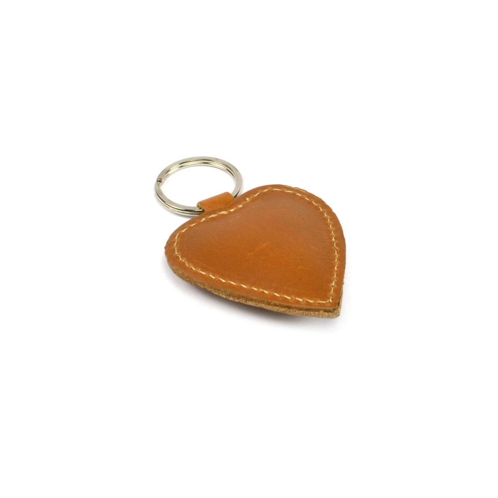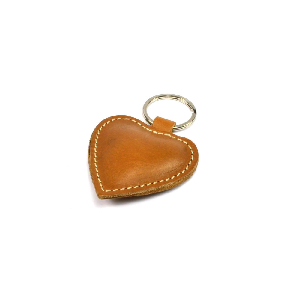 Moderní přívěsek na klíče srdce vyrobený z pravé kůže světle hnědé barvy. Klíčenka má kroužek na klíče.