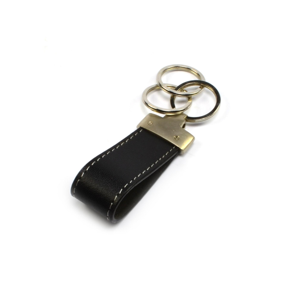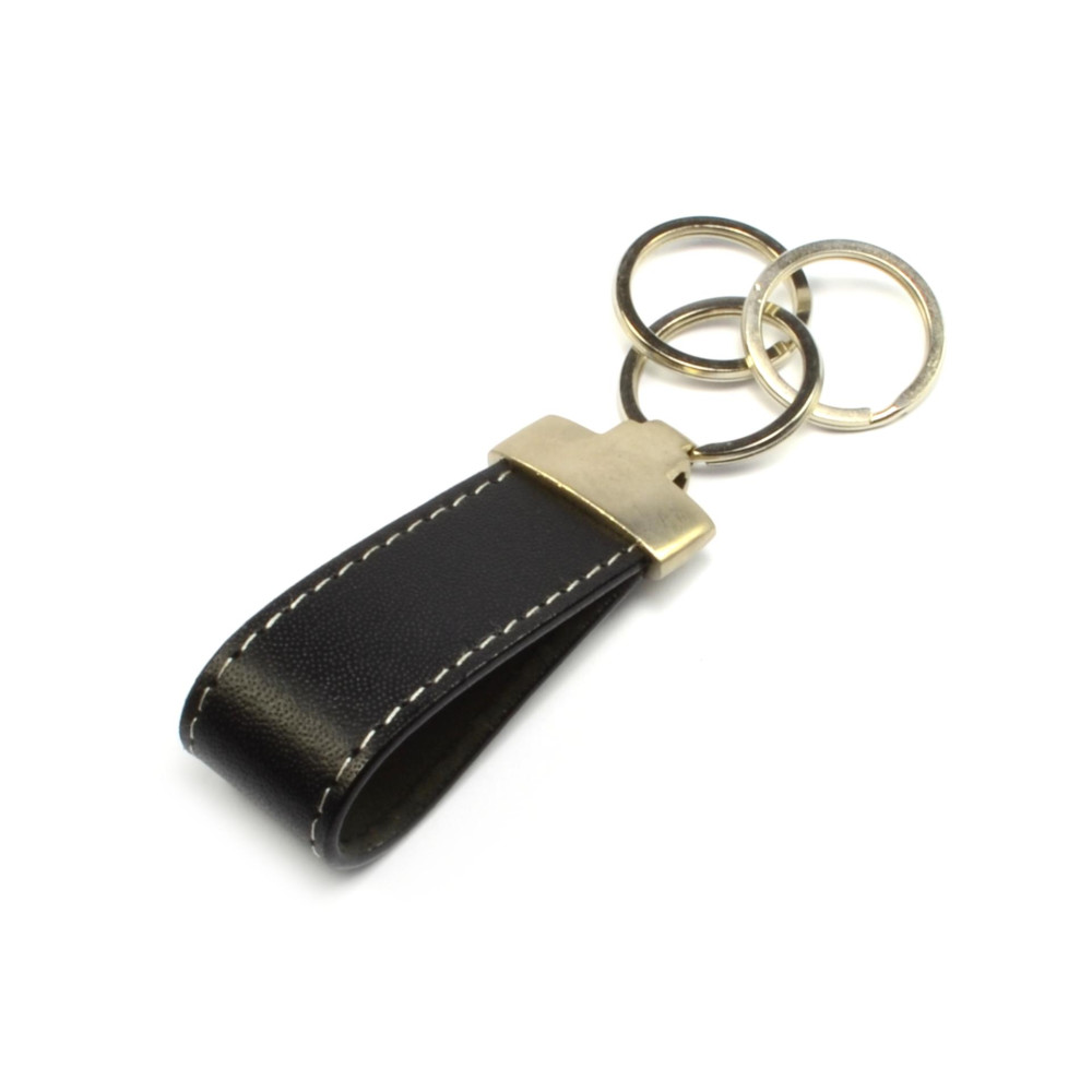 Praktické poutko na klíče zakončené masivnímni kroužky pro uchycení klíčů. Klíčenka má černou barvu a krásné prošívání bílou nití. Kožené přívěsky na klíče lze použít i jako klíčenky.