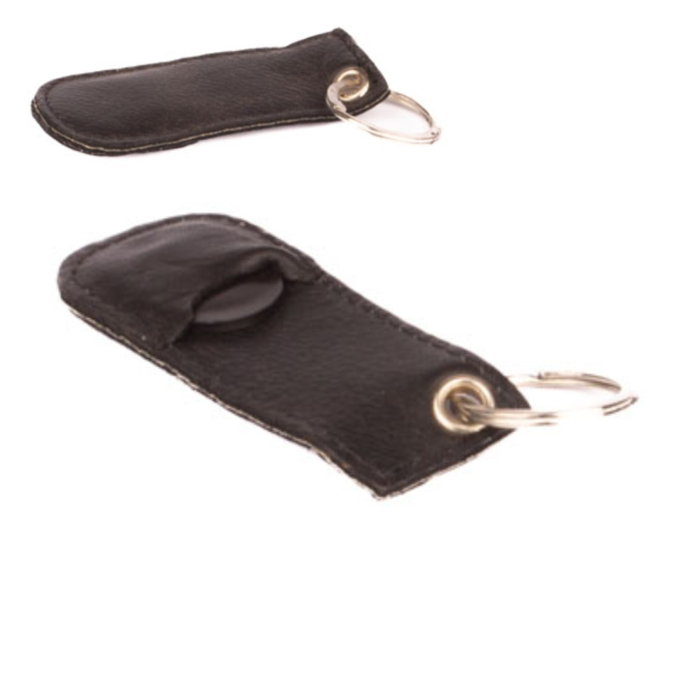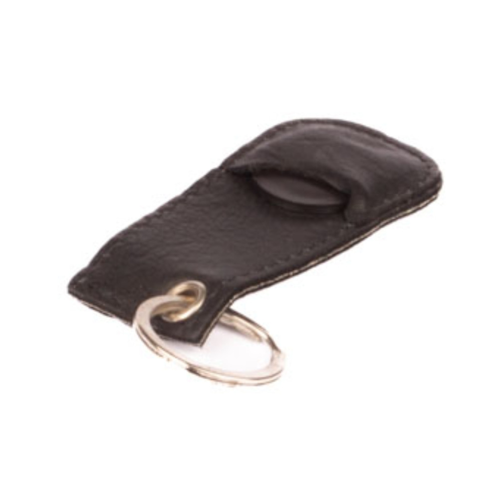 Multifunkční přívěsek na klíče s kapsou na žeton do košíku se připevní ke klíčům kroužkem. Barva přívěsku je černá a je vyrobený z pravé kůže.