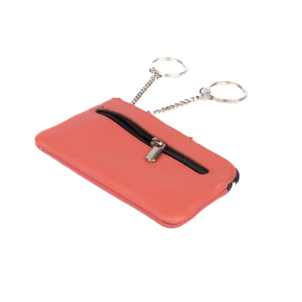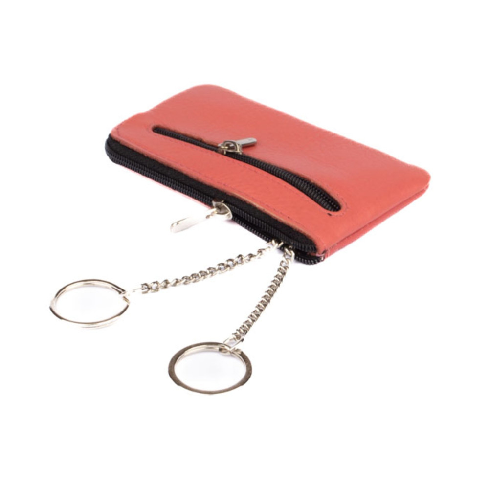 Kožené pouzdro na klíče z velmi jemné kůže se dvěma kapsičkami. Obě kapsy se uzavírají zipem. Do menší kapsičky můžete dát třeba bankovky a pár mincí. Ve vetší kapse jsou dva pevné řetízky s kroužky pro uchycení klíčů. Pouzdro je vyrobeno z pravé kůže v pastelově lososové barvě. Pouzdro je značky Cavaldi.