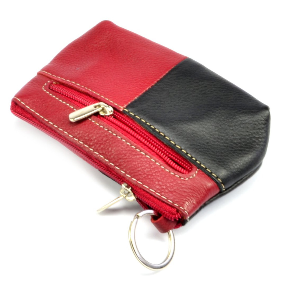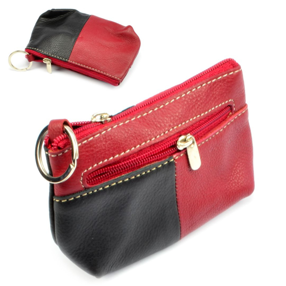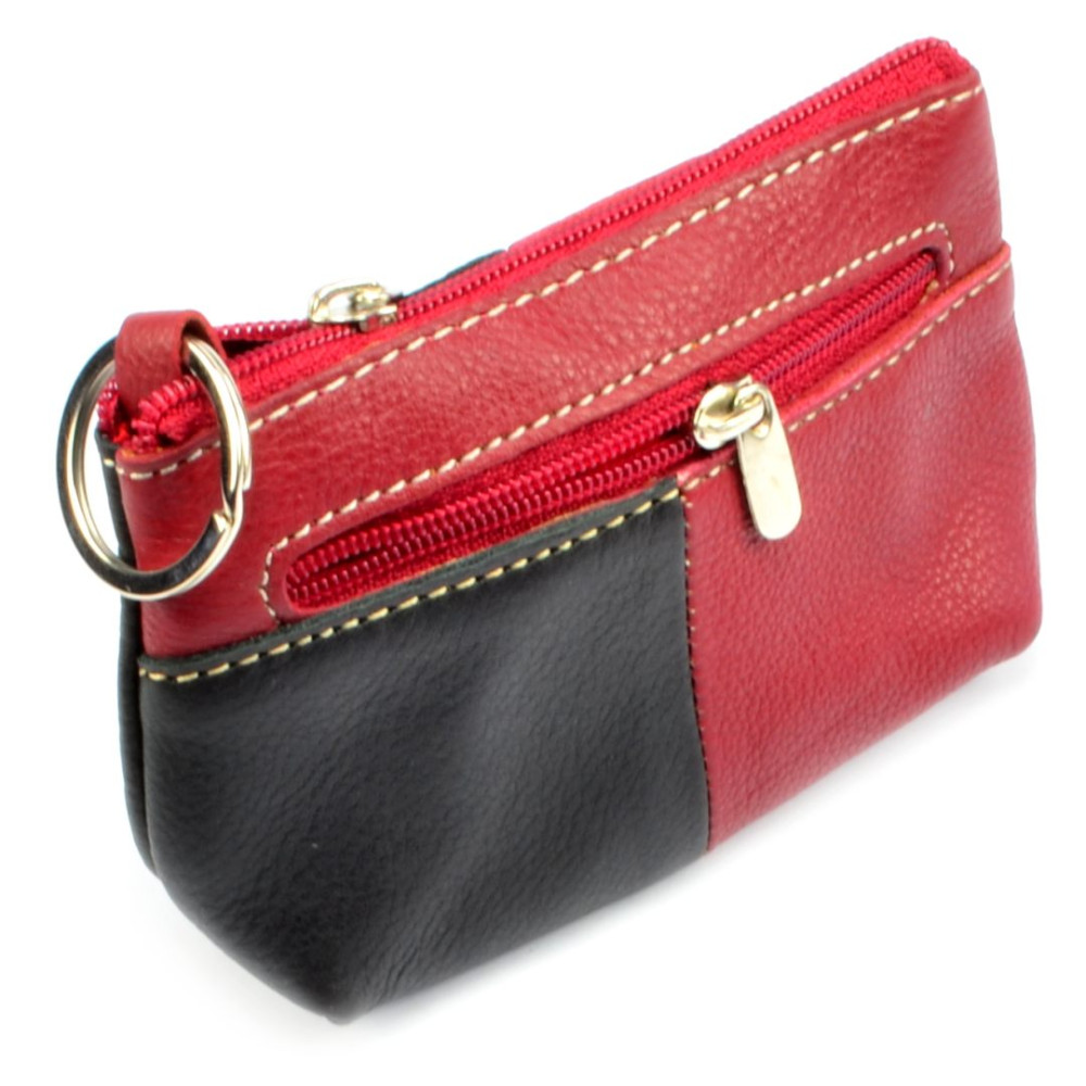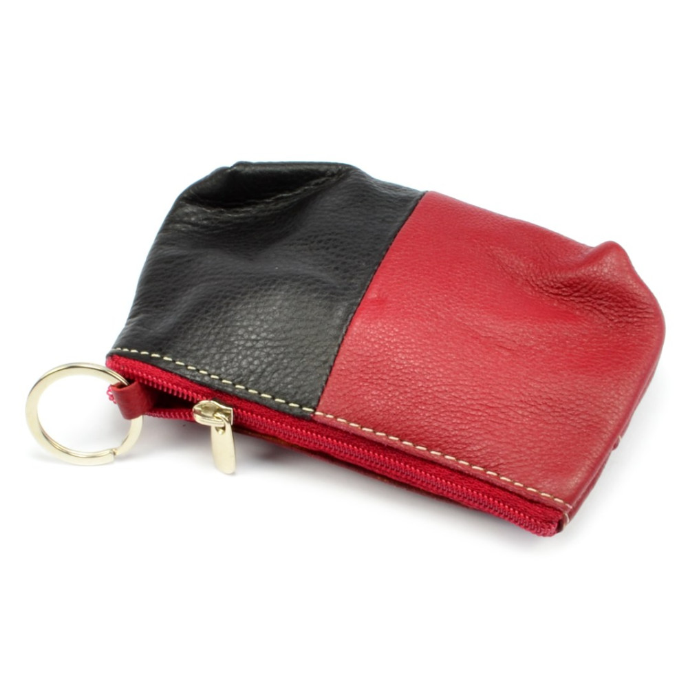 Velká kožená klíčenka z jemné kůže. Na horní straně pod zipem je velká kapsa s poutkem a kroužkem pro uchycení klíčů. Z přední strany je menší kapsička uzavíratelná zipem. Klíčenka je vyrobená z pravé kůže černé a vínové barvy barvy.