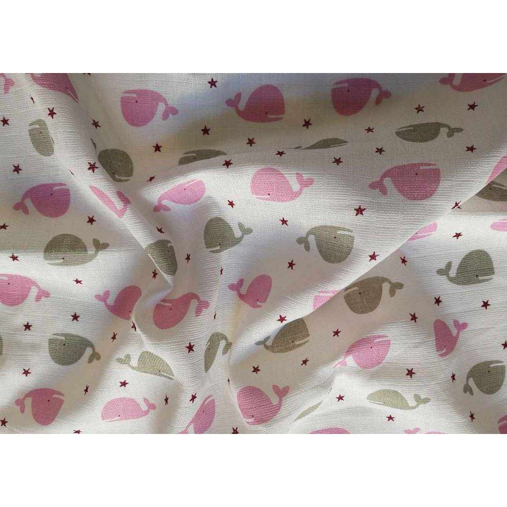 Látková plena s potiskem Velryba růžová 70x70 cm