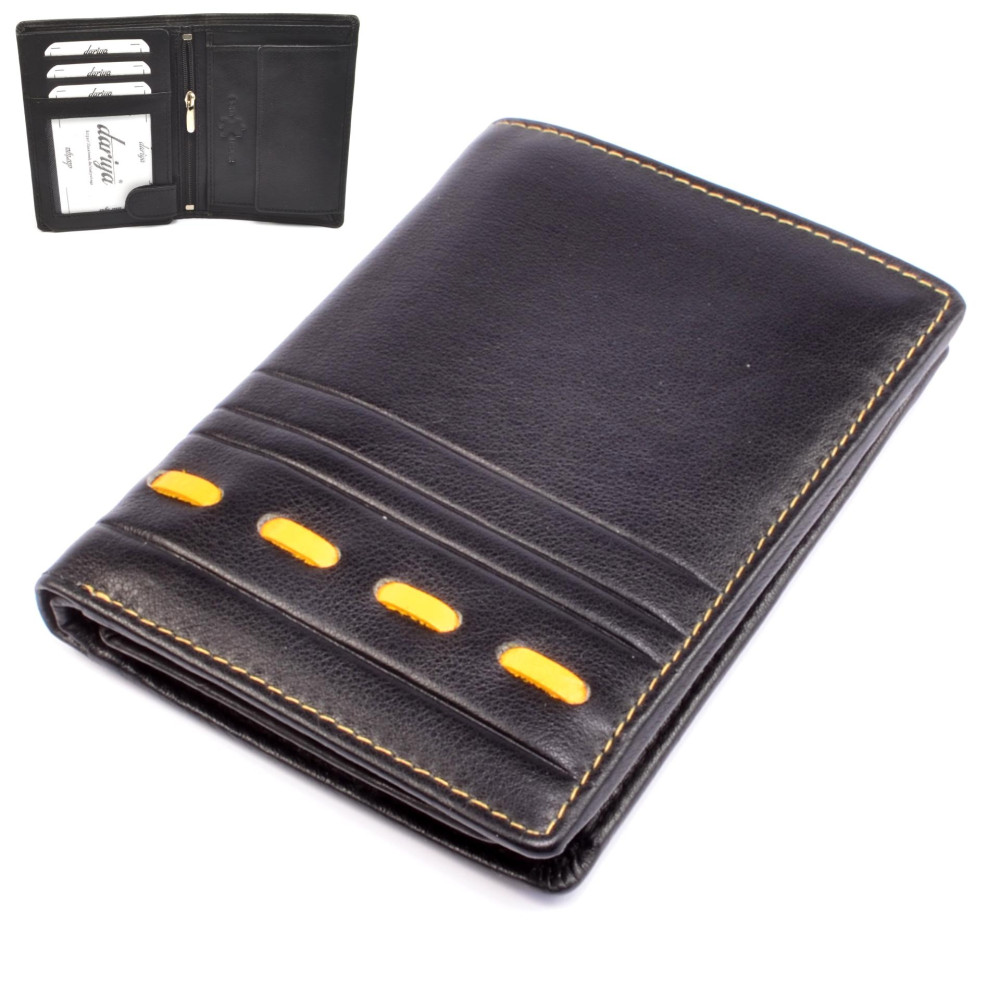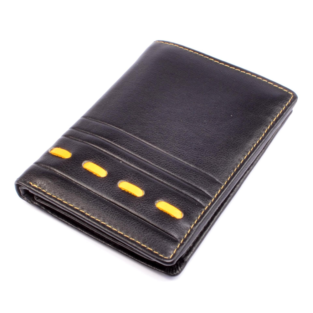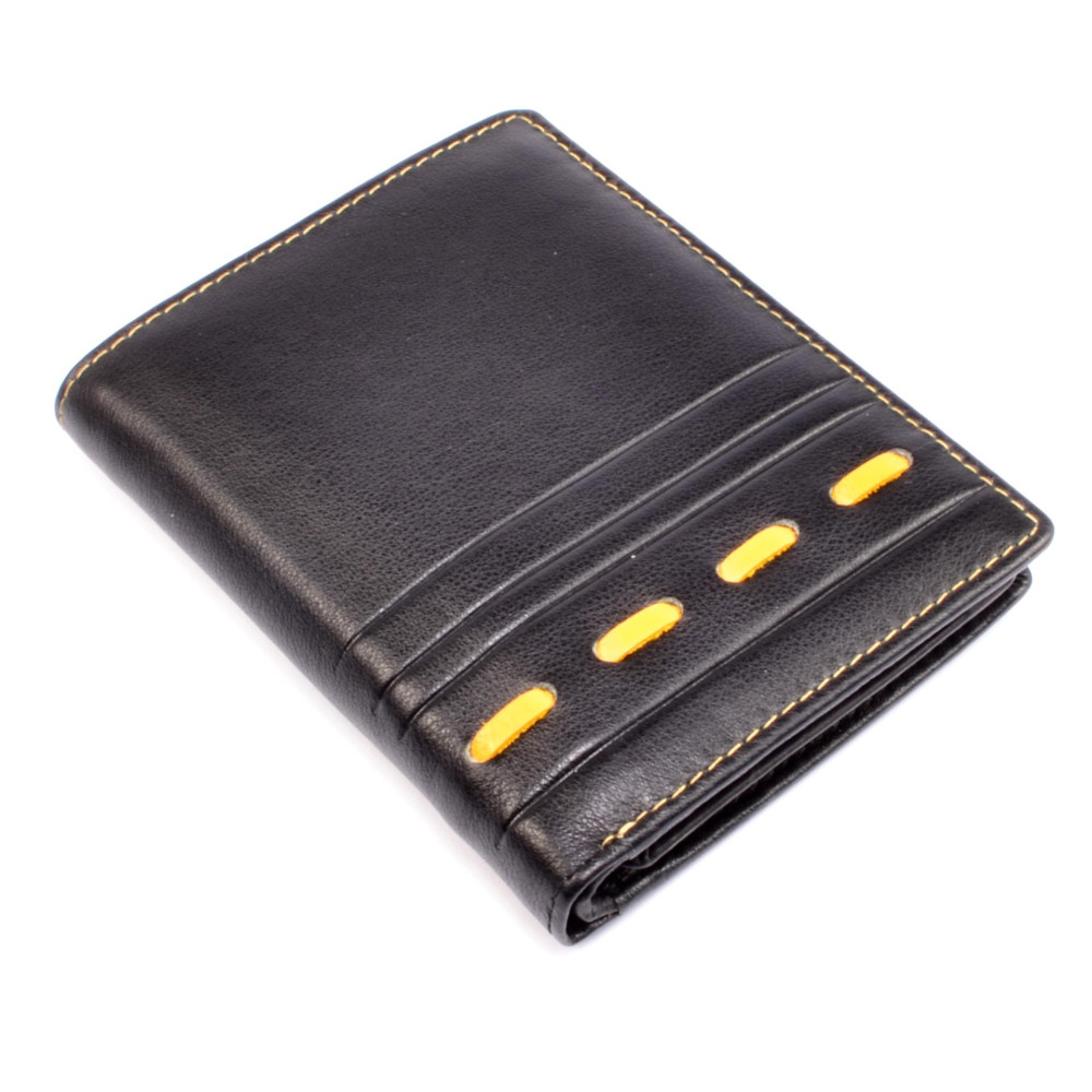 Tato černá luxusní pánská peněženka je symbolem elegance a vkusu. Peněženka je vyrobena z kvalitní pravé kůže, která zaručuje dlouhou životnost a odolnost. Jednoduchý, ale sofistikovaný design je ideální pro každodenní nošení i speciální příležitosti. Černá barva dodává peněžence nadčasový vzhled a výrazné žluté lemování a prošití moderní design pro stylové muže. Dopřejte si luxus, který si zasloužíte.