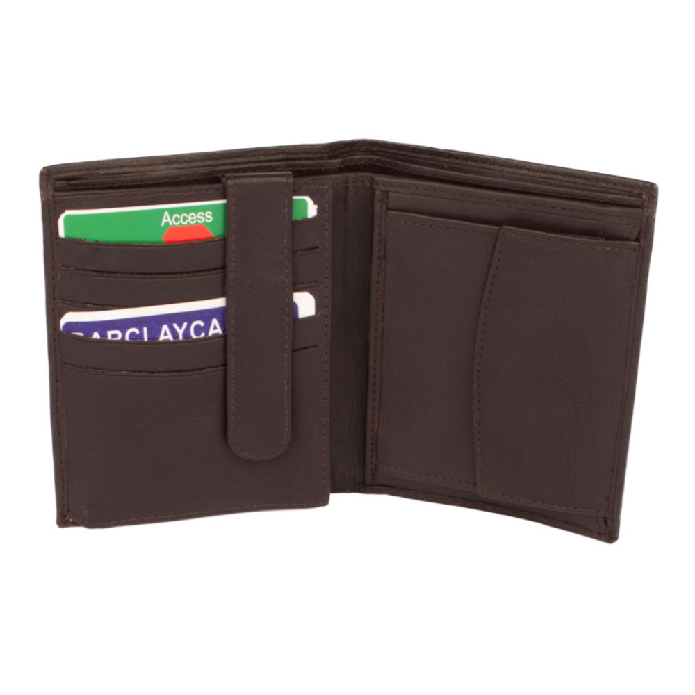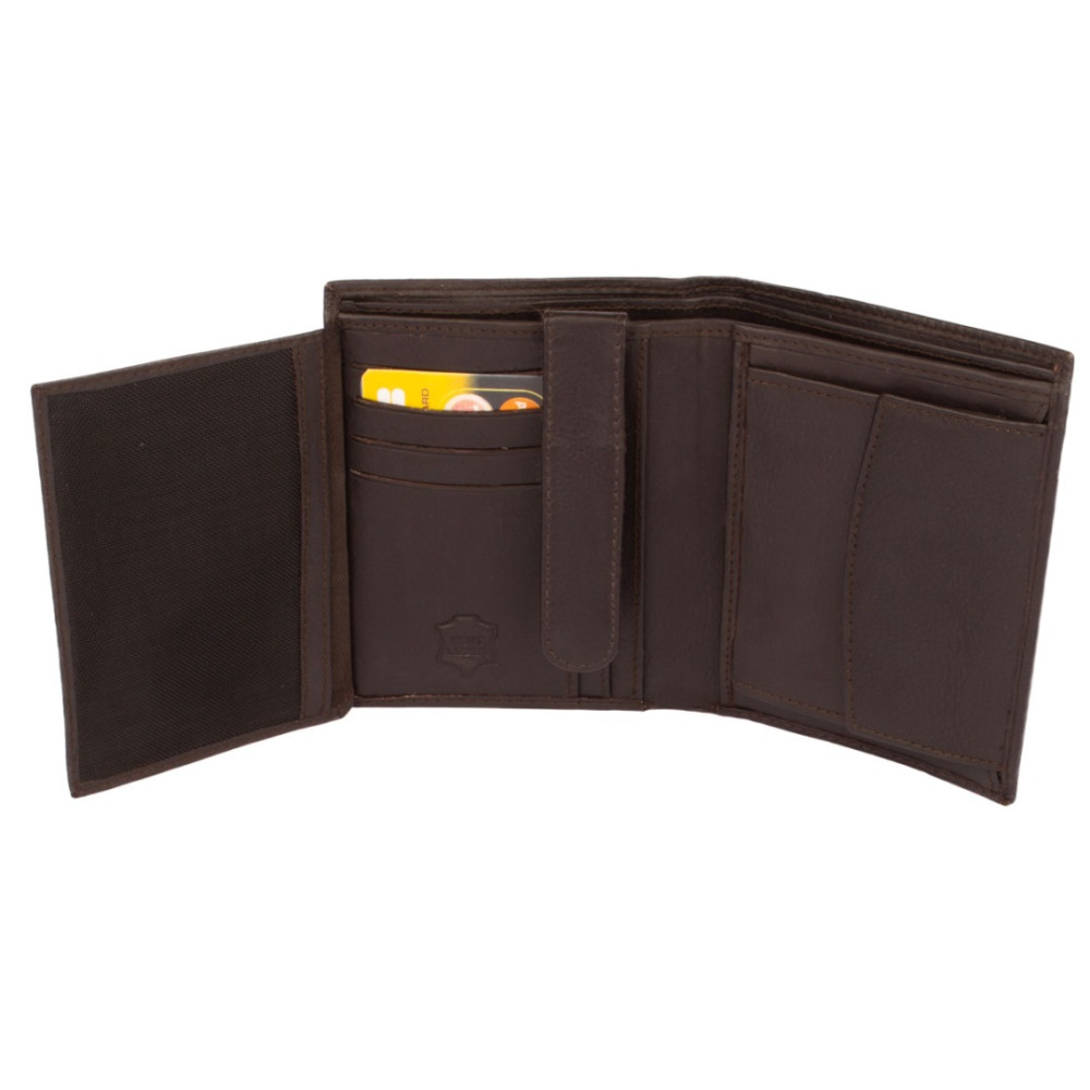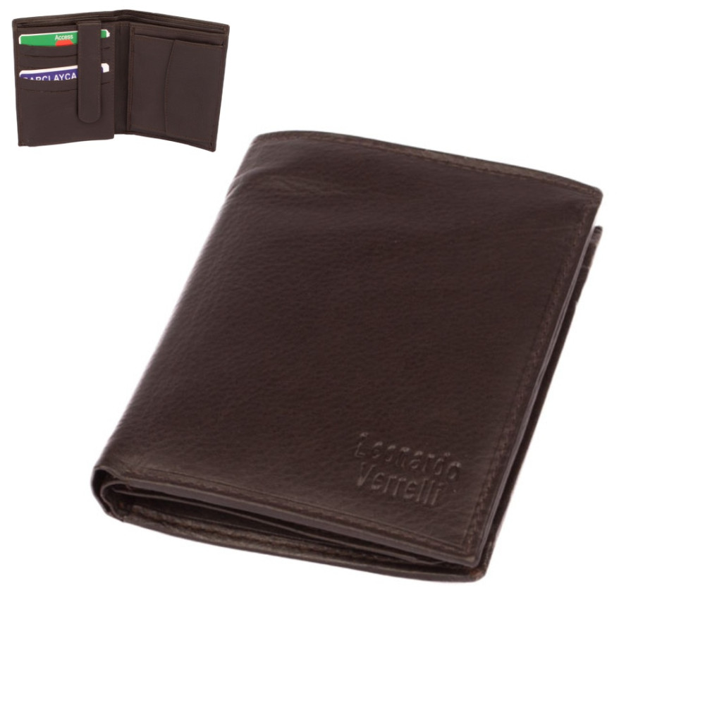 Hnědá kožená peněženka pánská z pravé kůže. Peněženka má dostatek kapes na vaše karty, doklady i bankovky. Po jejím otevření jsou přístupné kapsy na karty, jedna je průhledná. Mincovník po pravé straně se uzavírá klopou s pevným drukem. V horní části peněženky jsou dvě velké kapsy na doklady. Do obou se české bankovky vejdou bez přeložení. Ve vnitřní klopě jsou zbývající kapsy na karty, některé jsou průhledné. Tajné věci ukryjete ve dvou vnitřních tenkých kapsách. Hnědá kožená peněženka pánská je vyrobena z pravé kůže hnědé barvy a je značky Leonardo Verrelli. Peněženka je také vybavena RFID ochranou proti nechtěnému čtení karet.