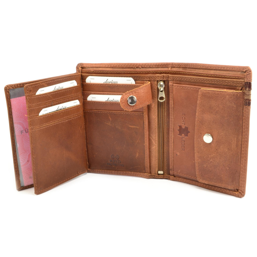 Hnědá pánská peněženka kožená je vyrobená z pravé hovězí kůže nappa velmi jemné na dotek. Po otevření jsou přístupné kapsy na bankovky, kapsy na karty i kapsička na drobné. Kapsy na doklady a platební karty jsou pod další klopou uzavřenou přezkou s pevným drukem. Mincovník se uzavírá klopou s pevným drukem. Hnědá pánská peněženka kožená je vyrobená z pravé hovězí nappa kůže.