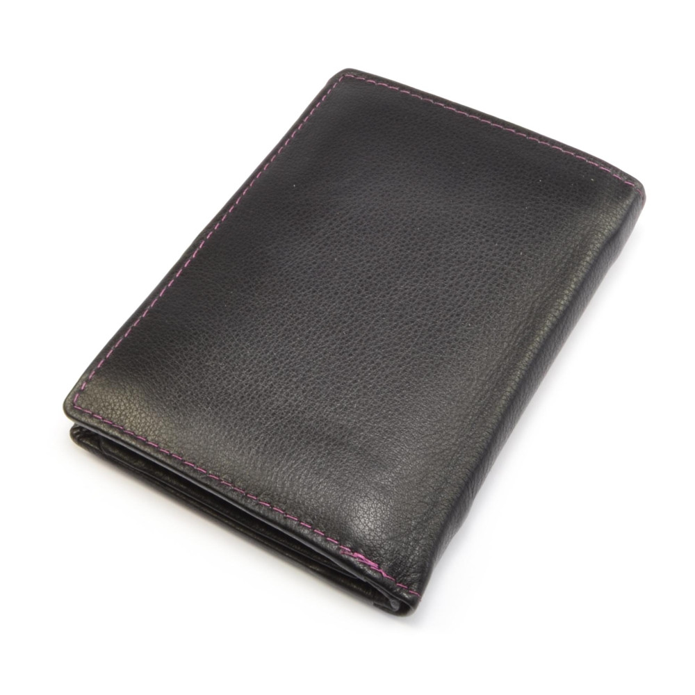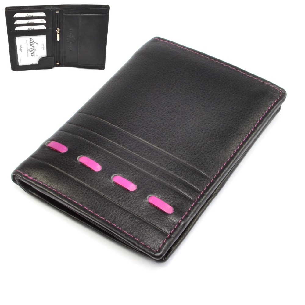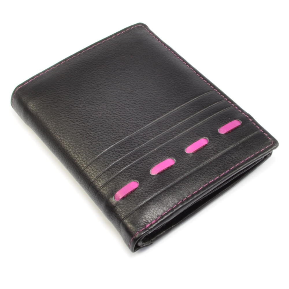 Kožená pánská moderní peněženka s neobvyklým růžovým proužkem a prošíváním je ideálním doplňkem, se kterým zaujmete. V moderní peněžence jsou po otevření přístupné kapsy na bankovky, mincovník s klopou a pevným drukem a kapsami na karty. Další kapsy jsou ukryté v klopě. Pánská moderní peněženka je vyrobena z pravé hovězí kůže nappa, zdobená barevným prošíváním. Peněženka je zabalena v dárkové krabičce.