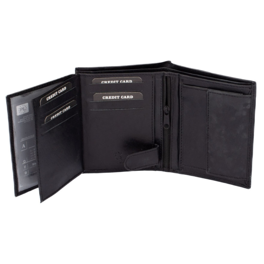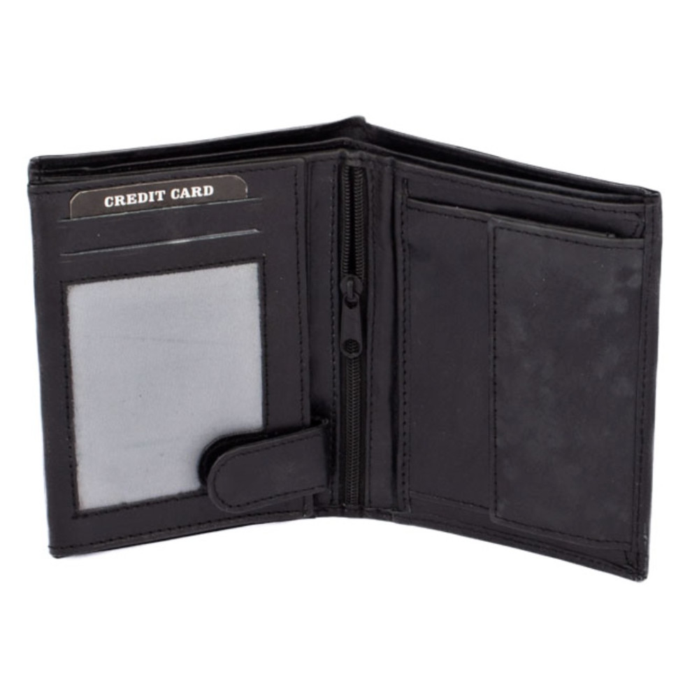 Kožená pánská peněženka elegantní černé barvy je vyrobena z pravé kůže. V peněžence je taková ta praktická klasika, jak jste zvyklí. Uvnitř najdete dostatek kapes na karty a doklady, některé z nich jsou průhledné. Samozřejmostí jsou velké kapsy na bankovky ale také skryté kapsy, jedna z nich je na zip. Kožená pánská peněženka elegantní má mincovník, uzavíratelný klopou s pevným drukem. Peněženka je vyrobená z pravé kůže černé barvy, je značky Always Wild a je dodávána bez dárkové krabičky.